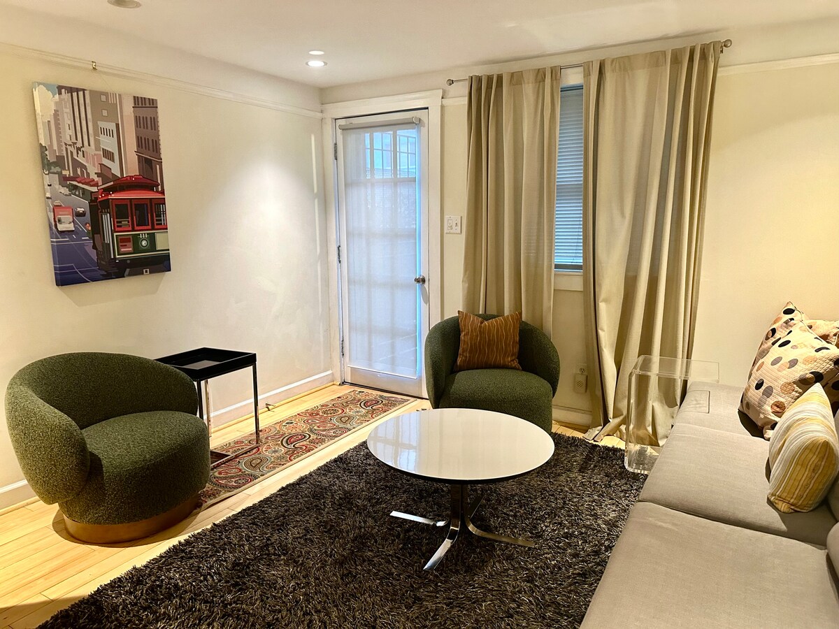 SF-nin ən isti məhəllələrindən birində - Missiyada lüks bağ süitası w/xüsusi giriş, ayrıca hamam otağı və cakuzi. Bu sakit Daxili Missiyada bir otaqlı şərikli məkan yoxdur/ böyük qonaq otağı, Xfinity, Apple TV, hi-sürətli Wi-Fi. Yayılmaq və dincəlmək üçün çox yer var. Ciddi təmizlik rejimi hər otaqda 30-min UVC yüngül müalicə, minimum 24 saat vakansiya, bütün ümumi səthlərin steril silinməsi. SF-də ziyarət etməyi planlaşdırdığınız yerlərə nisbətən xəritədəki mövqeyimizi yoxlayın. Xahiş edirik: siqaret çəkmək olmaz.