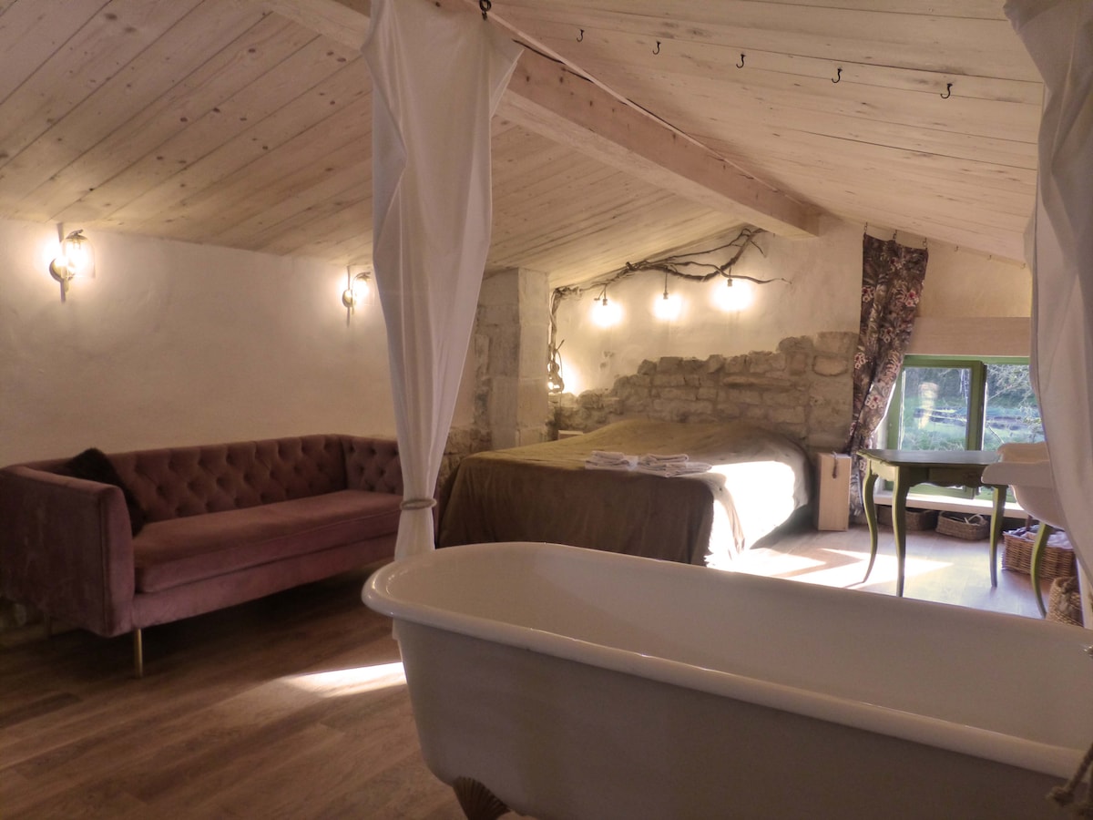 Petit logement cosy et atypique dans l'ancien four à pain du village. Une chambre spacieuse vous attend à l'étage, avec salle de bains dans la chambre, espace kitchenette et salon-salle à manger au rez-de-chaussée. Vous pourrez vous détendre et profiter de ce moment au calme en pleine nature et profiter des espaces extérieurs partagés. Nous nous trouvons au bord de la N4 à 10mn de Bar le Duc, de saint Dizier et de Ligny en Barrois. Le lac du Der est à 30mn.