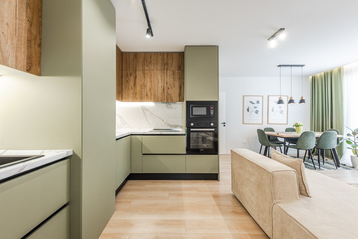 Dənizə qalxın! Bu işıqlı, müasir süita sahil promenadasının mərkəzində, qumdan bir neçə addımlıq məsafədə yerləşir və ətrafında kafe, bar və restoranlar var. Rahat qonaqlama üçün vacib imkanlardan zövq alın: - Spa təcrübəsi üçün otaqda cakuzu - Açıq dəniz mənzərəli balkon (günəşin doğuşu zamanı qəhvə və ya gün batımında şərab içmək üçün mükəmməldir) - Yüksək sürətli Wi‑Fi, ağıllı televizor və ağıllı kilid vasitəsilə öz-özünə giriş - Kondisioner və rahat çarpayı (maksimum 3 qonaq yata bilər)