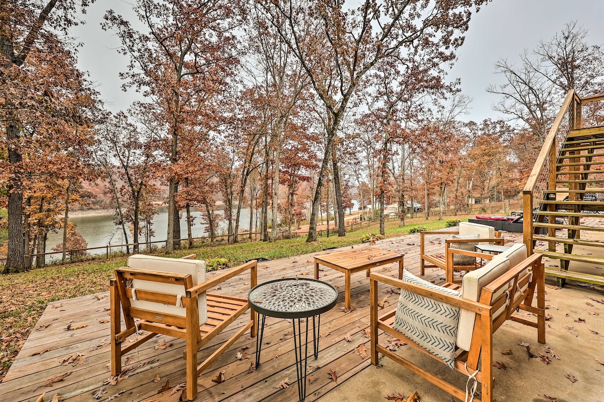 Welcome to our luxurious lakefront retreat on Beaver Lake! This exquisite 3-bed, 2-bath home boasts stunning floor-to-ceiling windows with breathtaking lake views and direct lake access. Enjoy 2 kayaks or unwind on the spacious deck. Inside, indulge in our coffee and wine bar or prepare meals in the fully equipped kitchen. End your day by one of the multiple fire pits or grilling on the Blackstone. Discover the comfort at our lakefront home and relax in the hot tub and enjoy the views.