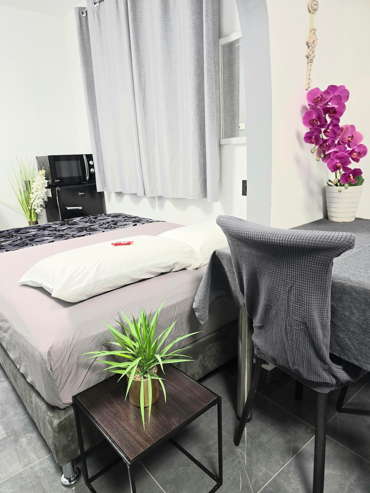 יחידת האירוח שלנו נמצאת בשכונת וילות יפה שקטה ונעימה. יחידת הסטודיו חדשה, מעוצבת מאובזרת ונוחה. ביחידה מטבח מרווח ומאובזר כולל מכונת אספרסו. מקלחת חדשה רחבה ומפנקת, חצר פטיו פרטית ואינטימית, מוצלת ופורחת . מתאימה לרוכבי אופנים וגולשים שיוכלו לאחסן בחצר ציוד בנוחות. לאוהבי הים אנחנו מספקים מגבות ים, מחצלת ושנורקלים. היחידה מתאימה לזוגות/ חברים ולכל מי שמחפש מקום אירוח מפנק, שקט ונעים, קרוב, אך לא בתוך מרכז העיר. ניתן למצוא חניה בתשלום בקרבת הבית, מכולת ומסעדה איטלקית. מוזמנים אלינו באהבה