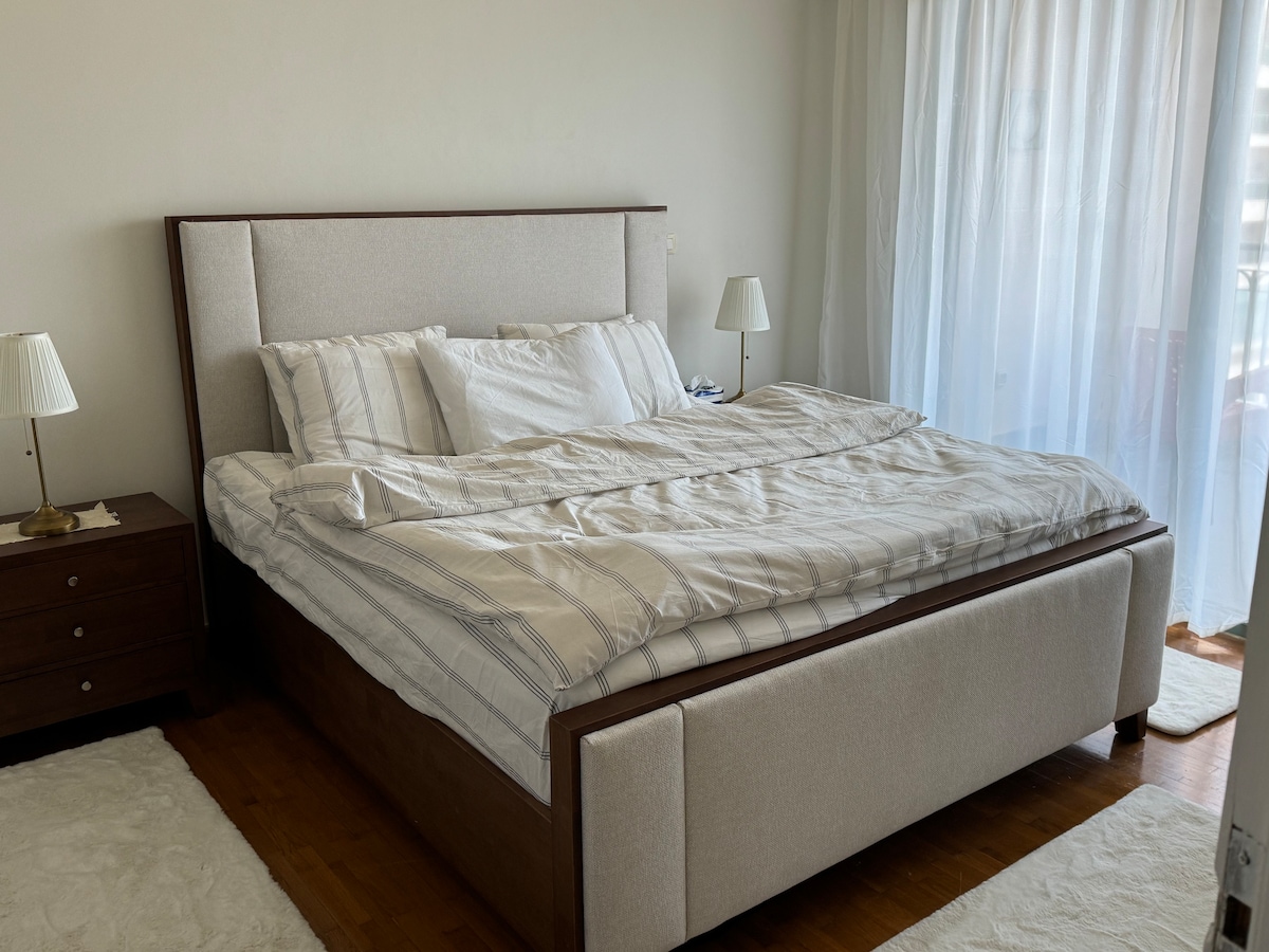 Nüfuzlu Four Seasons Alexandria-da lüks mənzil. Böyük ölçülü çarpayısı, vanna otağı, paltardəyişmə otağı və dəniz mənzərəli balkonu olan əsas yataq otağı. İkinci yataq otağında iki birnəfərlik çarpayı və dəniz mənzərəsi var. Geniş qonaq otağı, yemək sahəsi, tam təchiz olunmuş mətbəx, camaşırxana və ayrıca hamam-tualet. Bina daxilində lüks otel xidmətlərindən, ayrıca çimərlik və hovuza girişdən, alış-verişdən və əyləncədən zövq alın. Fasiləsiz rahatlıq üçün elektrik enerjisi kəsilmir.