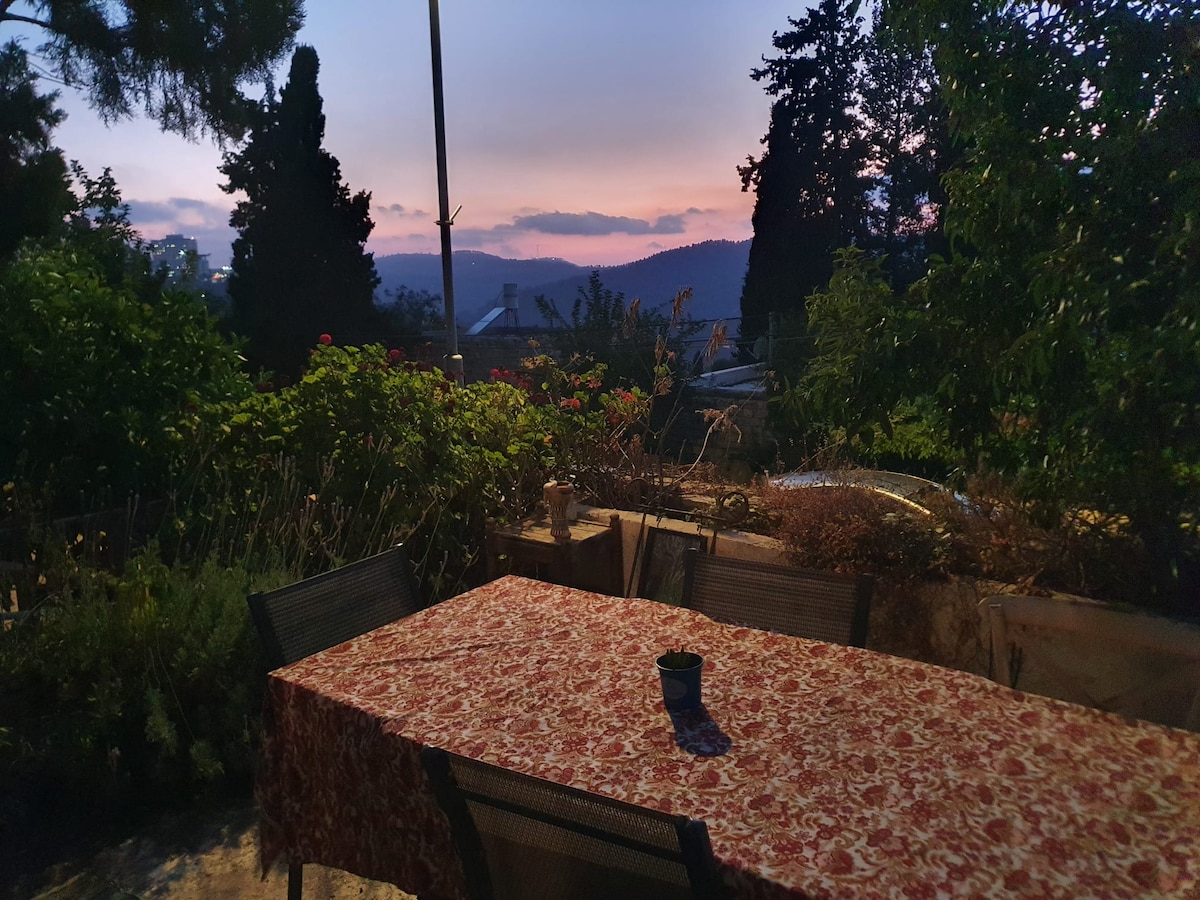 Qida mağazası və tanınmış kafe/restoranı olan, gözəl mənzərəli Ein Kerem və Yerusəlim Meşəsi mənzərələri olan son dərəcə sakit bir kənddə, Yerusəlimdən bir neçə dəqiqəlik məsafədə müstəqil bir studiya. Mülkdə müstəqil giriş və imkanlar var: WiFi, kondisioner, Smart TV və kabel, mətbəx. Hovuz özəldir və yalnız həyat yoldaşım, mən və 2 Airbnb qonağı tərəfindən istifadə olunur. Hovuz 4,5 x 11 metrdir və duzlu sudur. Qüds və digər yerləri ziyarət etmək üçün sakit və ideal yer. Yalnız böyüklər üçün.