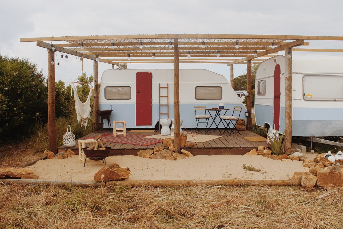 Xəritəni yoxladığınızdan əmin olun - Koimbra DEYİL, Odeceixe yaxınlığındakı Cənub-Qərb Portuqaliyadayıq! Portuqaliyanın cənub-qərbindəki incə təpələrdə yerləşən vintaj karvan istirahət yerimiz sizi təbiətin sakitliyinə qərq edəcək və SW sahilinin möhtəşəm korlanmamış çimərliklərindən cəmi 20 dəqiqəlik məsafədə qalan bütün qalanı geridə qoymağınızı təmin edəcək. Sevəcəksiniz: Bironqda oyanmaq Səma altında duş qəbul etmək Yavaş freska yeməkləri Səssizlikdə gecələyən ay işığı pəncərələrdən yavaşca tökülür