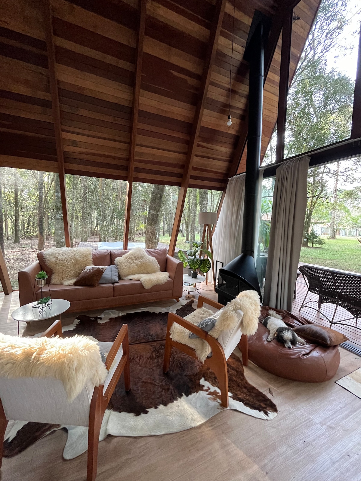 Bu hündür tavanlı alp dağ evində dincəlin. Bu unikal məkanın öz üslubu, taxta və premium örtüklü möhtəşəm daxma var. Bu dağ evində qonaqlamaq unikal təcrübədir. Açıq havada böyük cakuzi, yüksək təzyiqli qaz duşları və odun buxarısı qonaqlamanızı unikal edən imkanlardır.