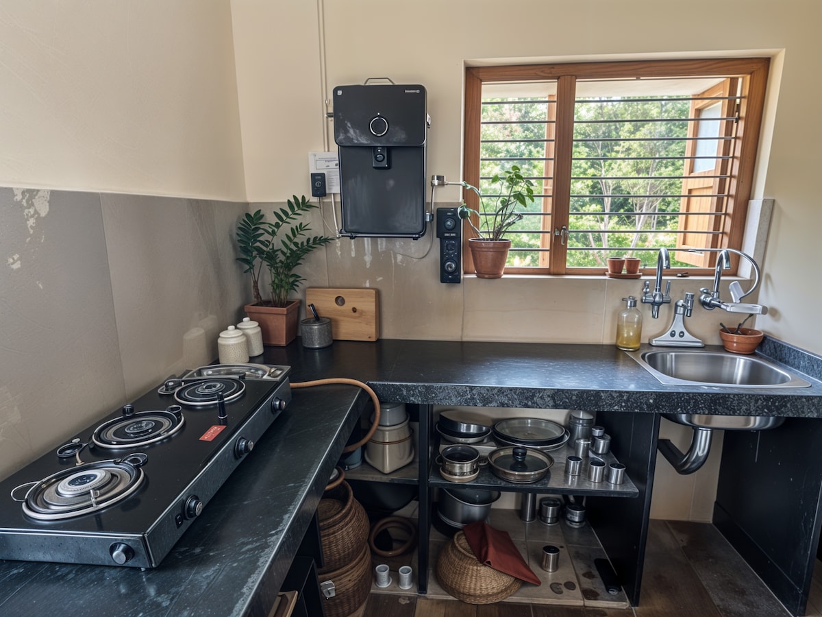 Balajinagar, Sangli, Kupvad və Miraj MIDC yaxınlığında müasir mebellərlə təchiz olunmuş üst mərtəbədə 1 otaqlı mənzil. Böyük şüşə pəncərəsi və açıq mənzərələri olan işıqlı qonaq otağı, 55 düymlük Smart TV, yüksək sürətli Wi-Fi və divan-çarpayı. Tam təchiz olunmuş modul mətbəx, paltaryuyan maşın, iş masası olan yataq otağı, isti su və parkinq. Korporativ qonaqlamalar, cütlüklər və kiçik ailələr üçün idealdır. Öz-özünə giriş mövcuddur.
