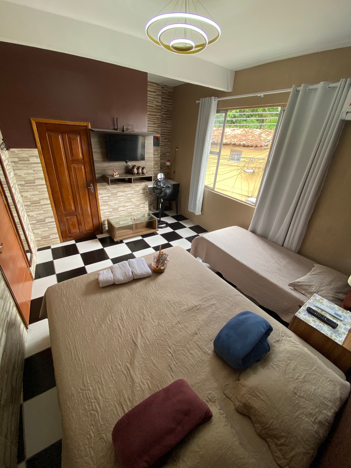 20M² sahəsi olan, mebellə təchiz edilmiş 21 yeni nömrəmiz, rahat çarpayılarımız, mətbəximiz, ayrıca hamam otağımız, mərkəzi kondisionerimiz, camaşırxanamız, böyük barbekü, elektron qapıdan girişi olan qarajımız, 24 saat nəzarətimiz və müstəqil girişimiz var. Sakit məhəllə. Supermarketlərə, idman zalına, alış-verişə və avtobus dayanacağına yaxındır. Yataq və hamam dəstlərini də icarəyə veririk. Ailələr, qruplar və bizneslər üçün ideal mövqe. Mangueirão-dan cəmi 4 km, Val-de-cans hava limanından 4,8 km və Hangardan 8 km məsafədədir.