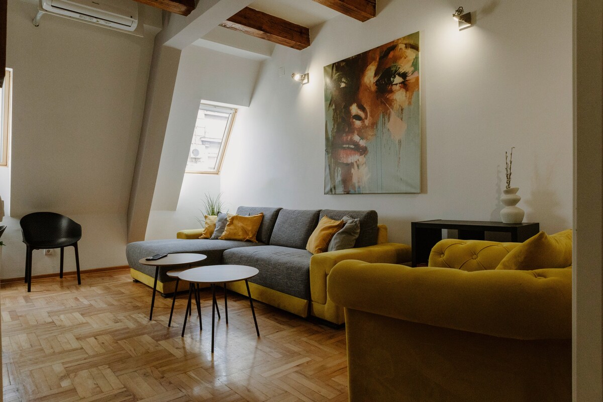 Belqradın ən cazibədar və mənzərəli məhəllələrindən biri olan Zemunun mərkəzində rahat çardaq studiyası. Düşünülmüş şəkildə dizayn edilmiş və təbii işıqla dolu studiya orijinal yerli xarakter və ev hissiyatı ilə sakit və rahat atmosfer təklif edir. İctimai nəqliyyatla yaxşı əlaqələndirilən bu məkan Zemunu və Belqradın qalan hissəsini araşdırmaq üçün ideal bir məkandır. Zemunun cazibədarlığından zövq almaq, rahatlamaq və dincəlmək istəyən cütlüklər və ya maraqlı səyahətçilər üçün mükəmməldir.