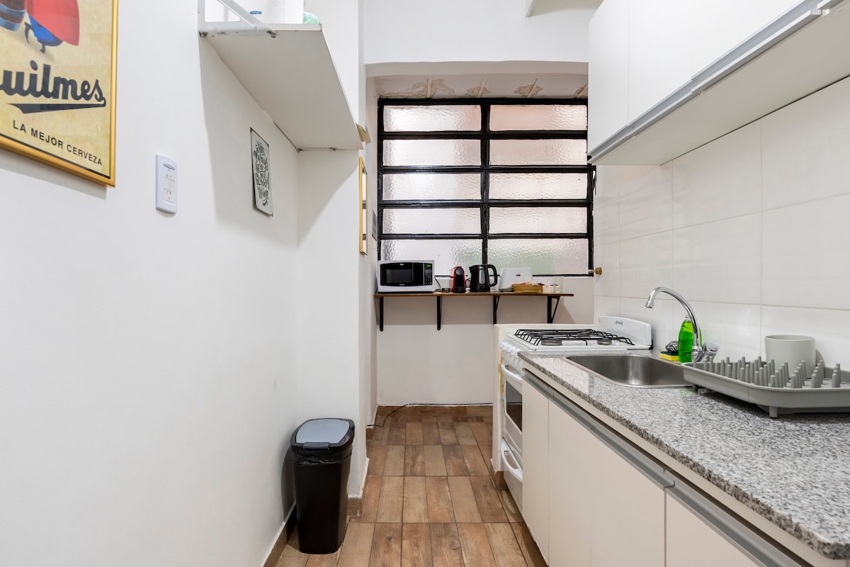 Este lugar está cerca de todo: dado que cuenta con distintos medios de transporte (subte, bus, taxi), Bus Turístico y se encuentra ubicado cerca del Congreso de la Nación. El edificio de estilo francés, posee seguridad 24 hs, Laundry, elevadores. Cocina, baño completo, plancha,WIFI, FLOW, 3 ventanas que dan a un luminoso pulmon, TV de 42 p. con HDMI o USB !!