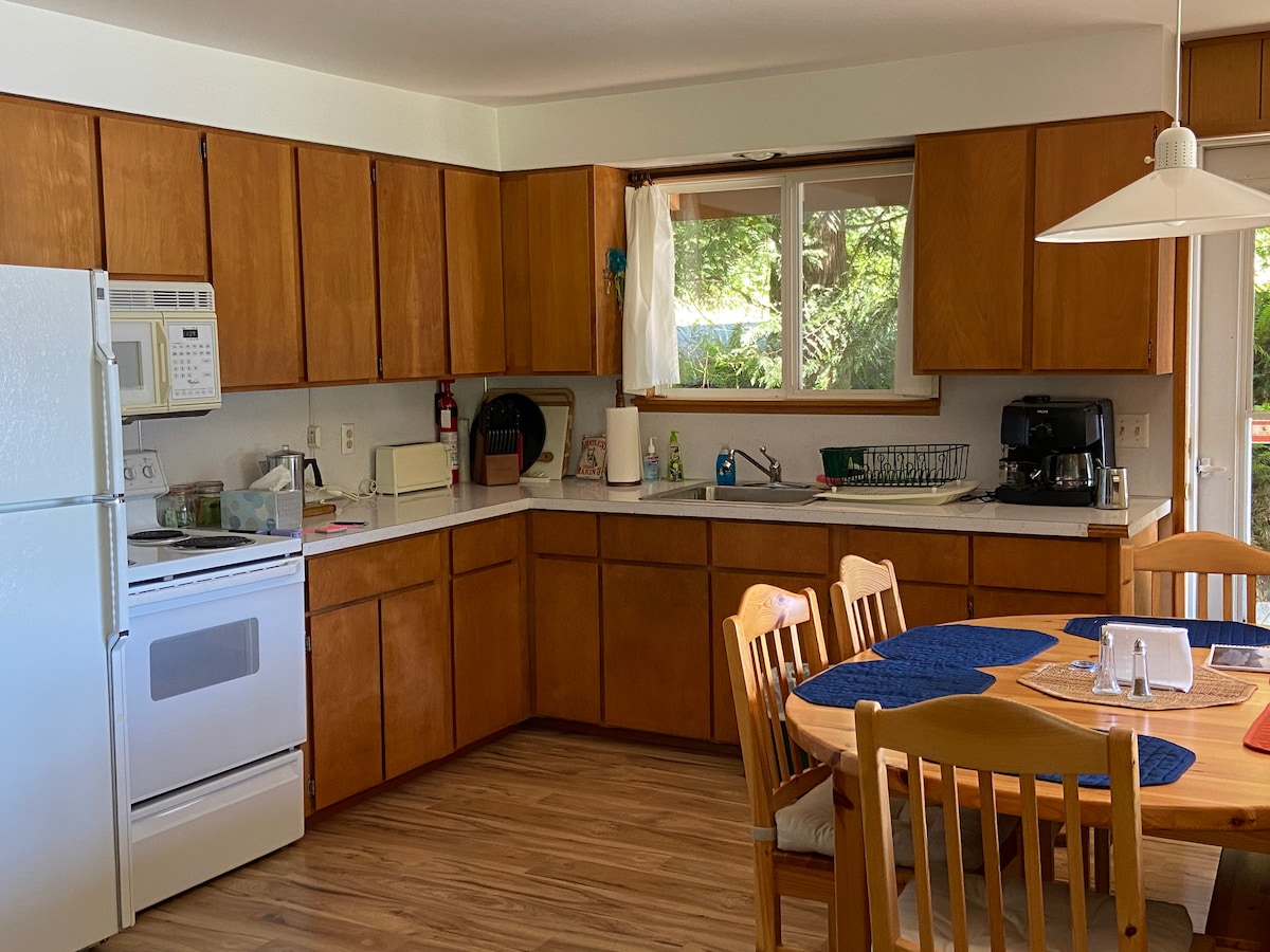 Cozy and rustic two bedroom cottage within walking distance to Deception Pass State Park, directly across the street from Deception Pass Marina in Cornet Bay. The location can't be beat for crabbing and fishing trips. The triple boat launch and brand new public dock is 1/4 mile down the road in the park. The front lawn is across the street from the ocean. We have the largest lot in the neighborhood and it includes fruit trees, a garden, BBQ and kayaks.