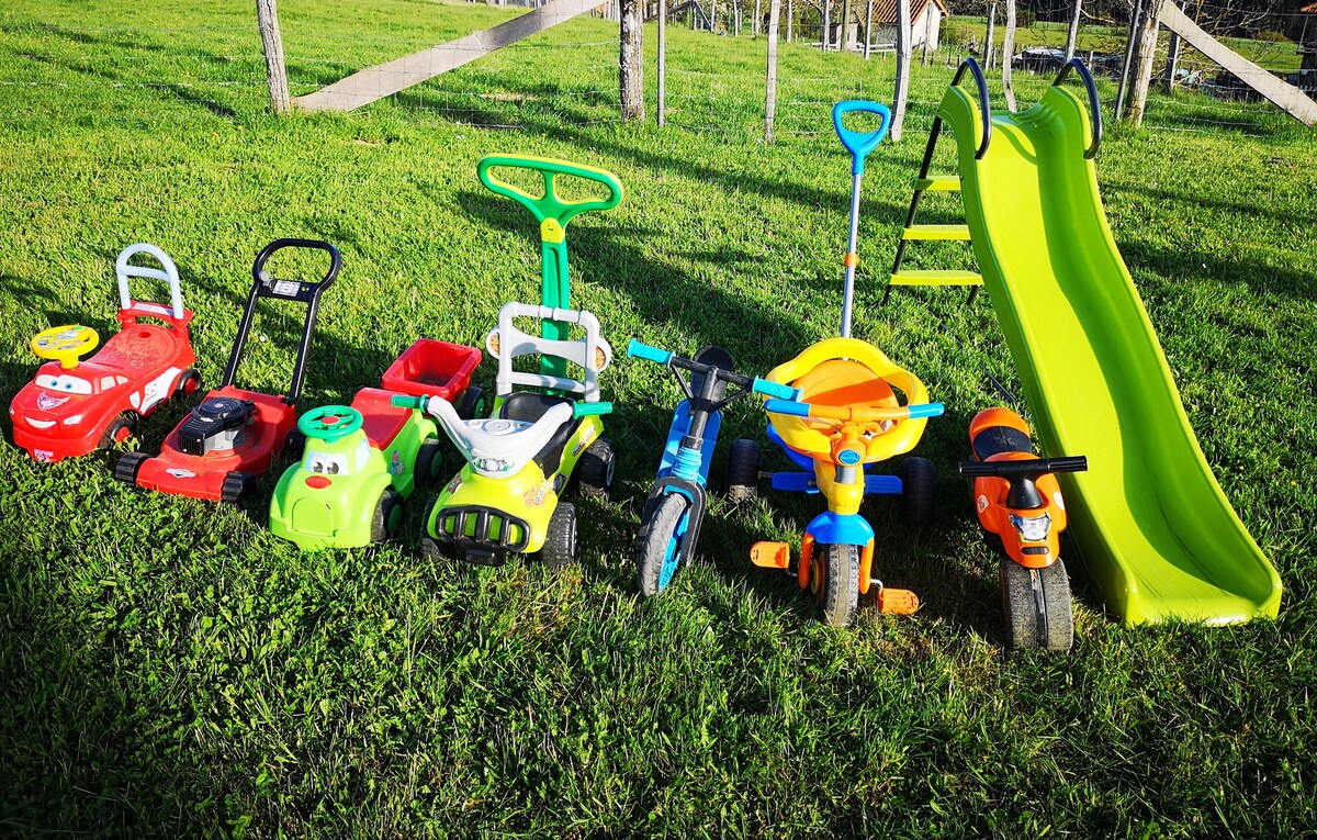 Bu rahat ev təbiətin ortasında bütün ailə üçün rahat qonaqlama təklif edir. Uşaqların oyunlara (yelləncək, poçt xətti, slayd) çıxışı olacaq. Yaxınlıqda gəzinti və dağ velosiped yolları. Döşəkağılar təmin edilir (140 çarpayı və 90 çarpayı). Dəsmallar üçün (adambaşına 3 avro bron ediləcək) Ərazidə itimiz var. QEYD: ev heyvanlarını qəbul edirik (€ 5), onları qeydiyyatdan keçirin. Nəzərə alın ki, onlar heyvanlarımızla yaşamalı olacaqlar.