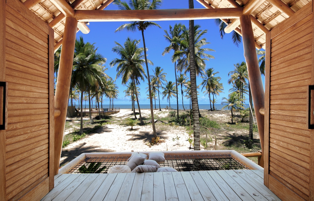Bu dəbli yerdə bütün ailə ilə əylənin. Ailə üçün ikinəfərlik çarpayı və iki nəfərlik kiçik ev. Dincəlmək, quşları dinləmək və çimərlikdən bir qədər zövq almaq üçün yer. Netflix və Globo Play var, çölə çıxmaq istəməyənlər və filmdən zövq almaq istəyənlər üçün. Burada tam mətbəx və iki vanna otağı, bir daxili və bir xarici otaq var. Həmçinin uşaqların qumda oynaması və ya topla oynaması və digər idman növləri üçün böyük arxa həyəti var.