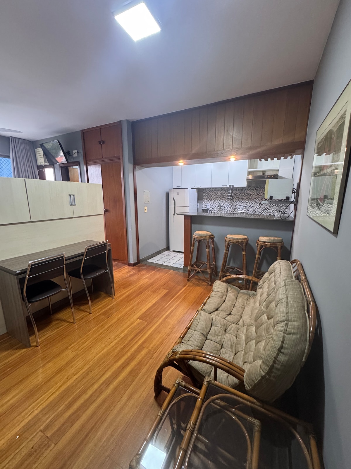 Müasir Mənzil, 32m2, Sionun ən yaxşı nöqtəsində yerləşir. Minibar, aşpaz, televizor (açıq kanallar/Netflix), kondisioner, fen, elektrik çaydan və internet ilə mətbəx təcrübəsi. Cənub Zonası, JK Meydanı və Bandeirantes prospektinin yanında, Supermarketlə üzbəüz. İdman zalı, sauna, üzgüçülük hovuzu, yaşayış sahəsi və icma mətbəxi (su, buz maşını) olan binanın damında. Tələbata uyğun təmizləmələr mövcuddur. 24 saat konsyerj ilə təhlükəsiz bina. * Qaraj daxil deyil.
