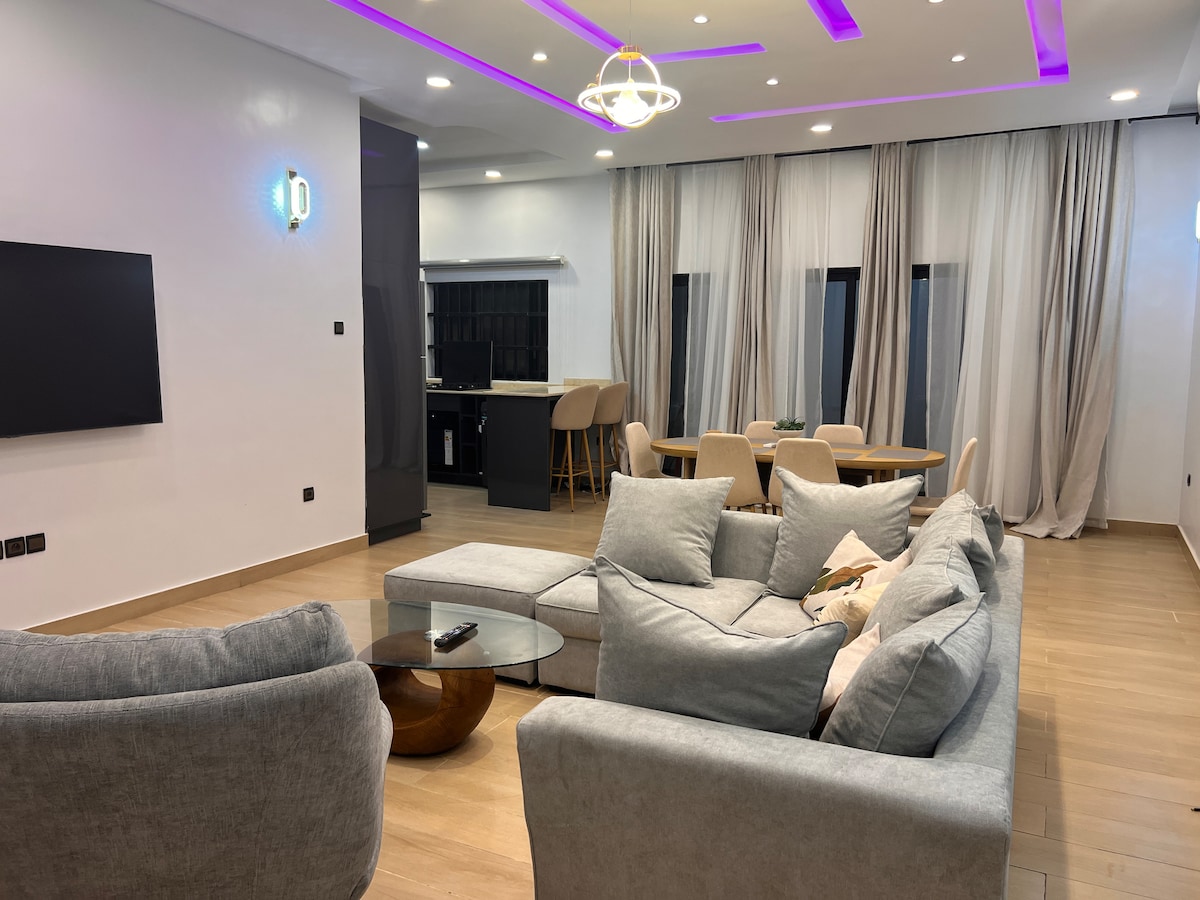 Nouveau! Vous ne rêvez pas. Havre de paix élégant en plein coeur de la Ville de Cotonou avec une grande terrasse. Agent de sécurité, conciergerie et parking inclus. Salon et salle à manger de plus de 50 m2. Connexion wifi à très haut de débit. À proximité de tout : - 3 mn du centre d'affaires de Ganhi - 5 mn du marché de Dantokpa - 6 mn de l'impressionante statue de l'Amazone (Festival Eya) - 8 mn de la Haie Vive (restaurants, divertissements) - 9 mn de l'aéroport