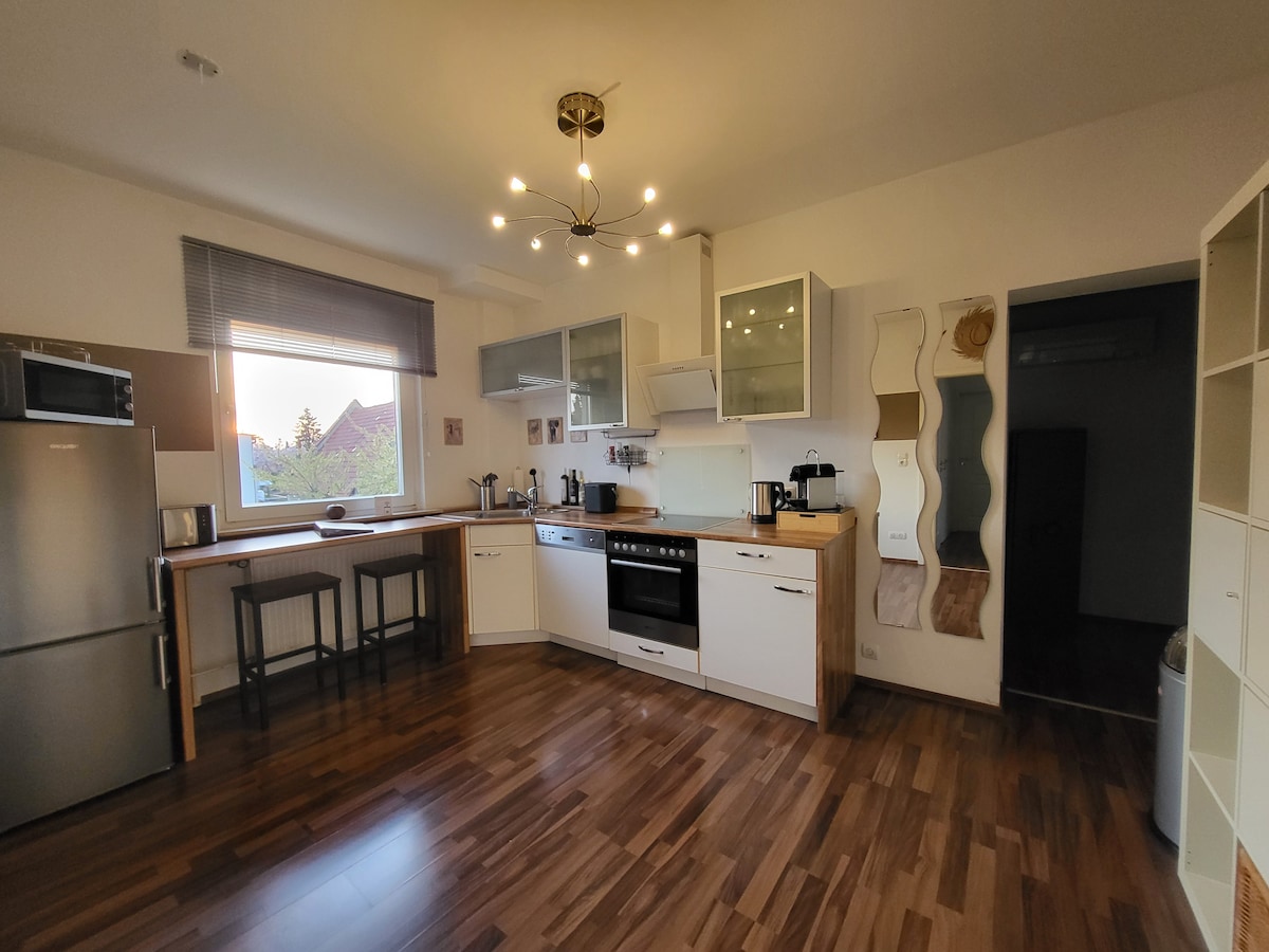 Spacious apartment with 110 m² plus a surrounding terrace with another 55 m². Cozy living room and large kitchen with plenty of equipment for cooking. Bathroom with bathtub and rain shower. Bedroom with 180x200 cm four-poster bed and reading chair. Lots of small, loving details, a quiet location right on the edge of the field and a relaxing feeling on the roof terrace.