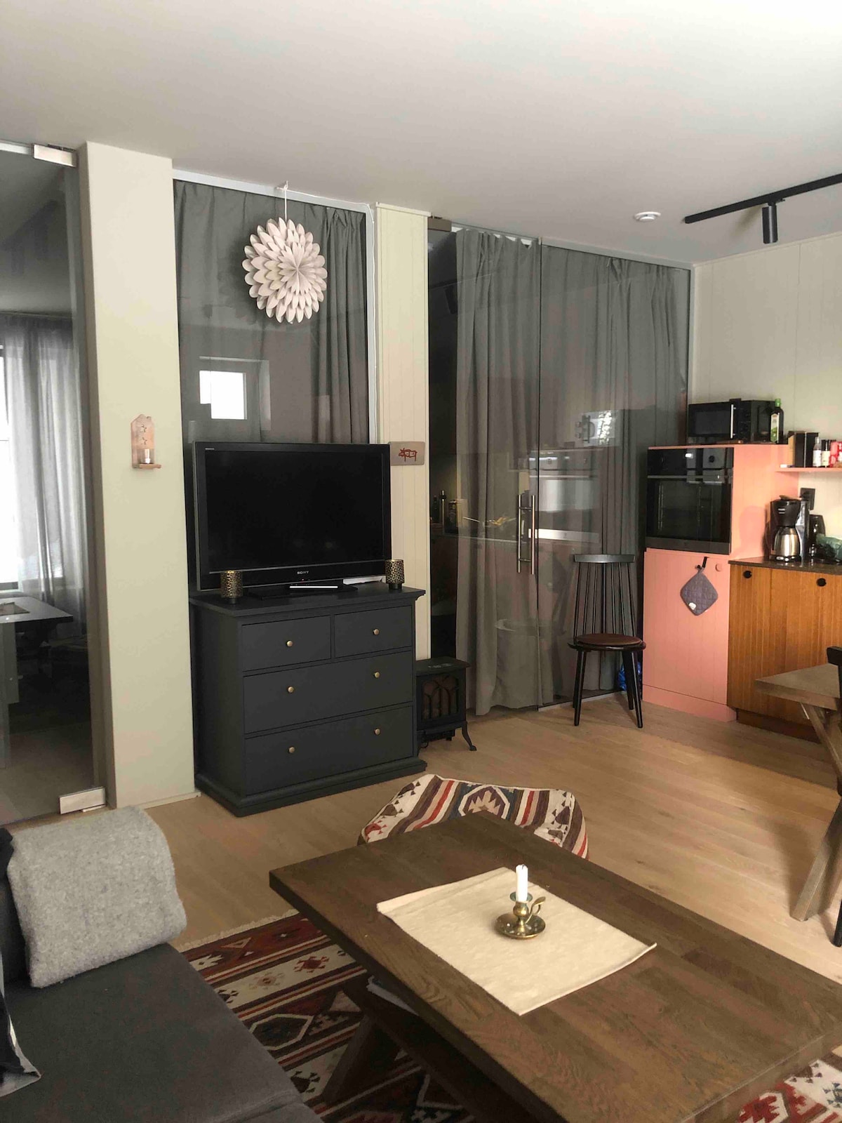 Located within a 30 minutes drive from Östersunds citylife and pristine wilderness of Oviken Mountains you find Bjärme lined up by forests and open fields. The cabin has a modern Scandinavian feel to it and you can literally enjoy the northern lights during the winters right on your doorstep. Next to the cabin, you'll find a private jacuzzi (open may - december) and a wood-fired sauna — the perfect retreat for unwinding and enjoying tranquility.