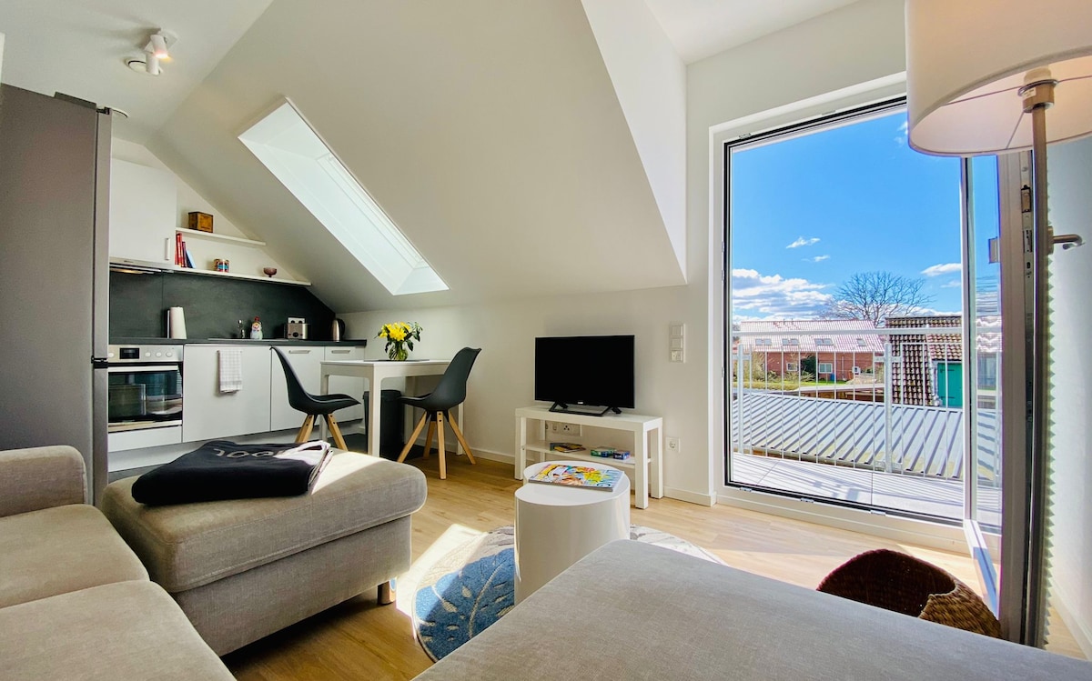 Modernes Penthouse mit 22qm Dachterrasse – Deine lichtdurchflutete Oase am Park Willkommen in deinem lichtdurchfluteten Refugium im Hamburger Osten! In der obersten Etage unseres modernen Neubaus erwartet dich ein ca. 40 qm großes, liebevoll gestaltetes Studio, das weit mehr bietet als ein anonymes Hotelzimmer. Dazu eine private, 22 qm große und überdachte Dachterrasse mit Blick in unseren Garten. Ob Frühstück im Freien oder ein entspannter Abend unter dem Dach – hier genießt du absolute Ruhe