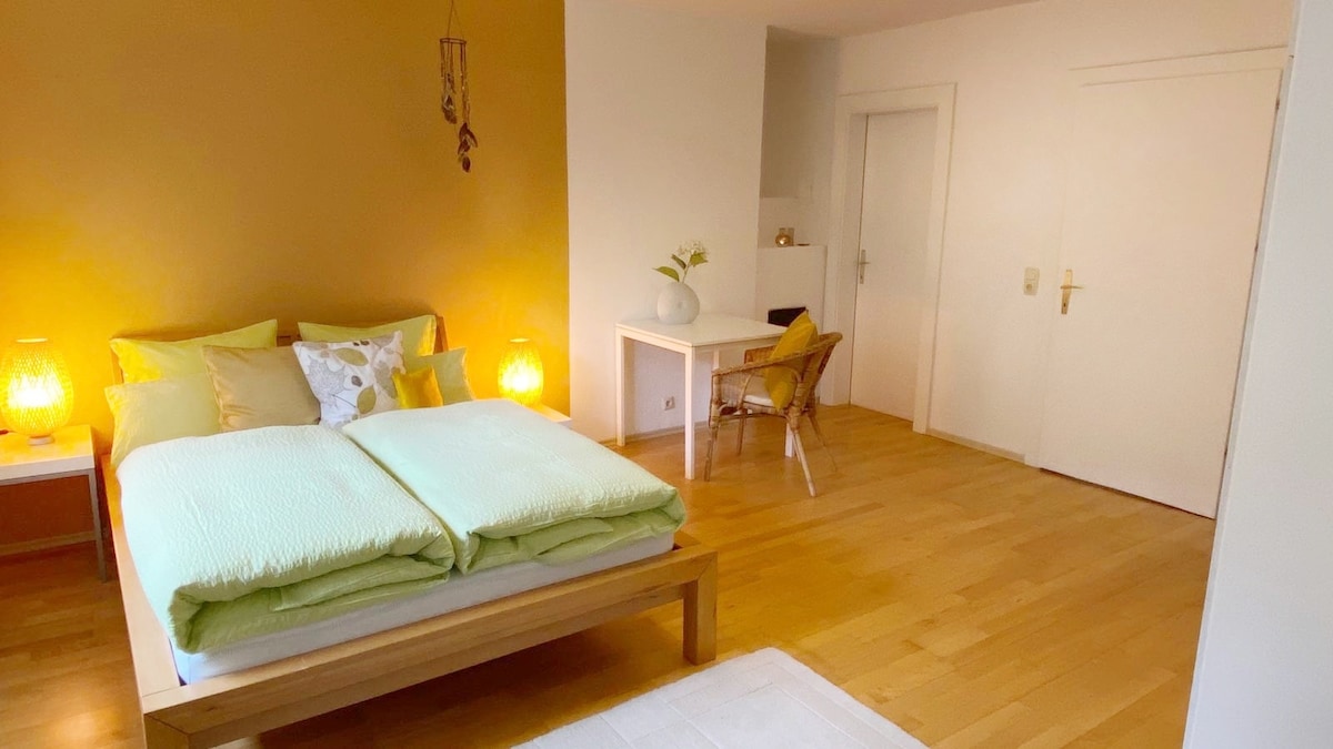 Sakit qonşuluqda və mərkəzi mövqedə parlaq böyük studiya. 10 dəqiqəlik məsafədə ərzaq mağazaları, qatar stansiyası, restoranlar və şəhər mərkəzi tapa bilərsiniz. Mənzil maksimum 6 nəfərlik qrup üçün idealdır. Tam təchiz olunmuş mətbəx, yaşayış və iş məkanı, eləcə də gözəl terras daha uzunmüddətli qonaqlamalar üçün əla seçimdir. Biz ayrıca otaq sahibiyik və öz evimizdə mənzillər təklif edirik. Adım Anceladır və qonaqlamanız zamanı həmişə saytda olacağam.
