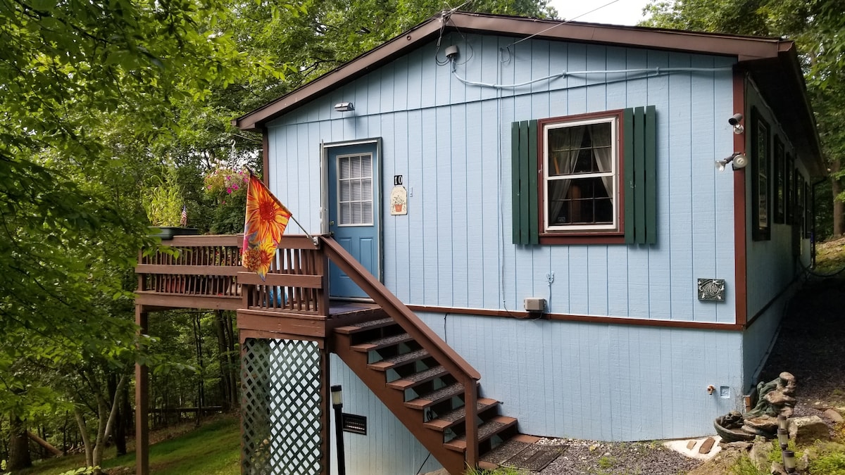 Cütlük, kiçik ailə və ya tək səyahətçi üçün unikal geniş qaçış. 30 ayaqlı böyük otaq, böyük göyərtə ilə üzbəüz pəncərələrin divarı, xüsusi şəraitdə palıd döşəmələri YENİ CAKUZİ. Süita hamamı olan kral yataq otağı; loftda əkiz çarpayı var. Mcm və üzüm toxunuşları ilə müasir, treetsdə sizin üçün sehrli bir istirahət yaradır. 2 hektarlıq ərazidə. Arxa qapıdan Kakapon dağının üstünə qalxın. Şəxsi icma hovuzuna/cakuziyə/tot hovuzuna (yalnız yay) sürətli sürücü (yalnız yay). 10 dəqiqə Roma Hamamları ilə Berkeley Springs, incəsənət s