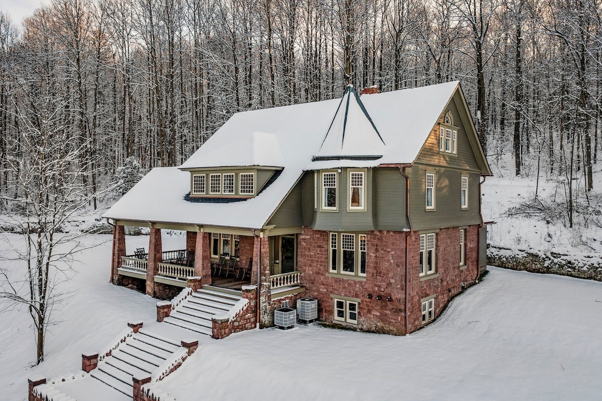 ★ Historic Victorian estate on a 19th-century resort property Guests can experience a unique blend of historical charm and modern luxury, offering a stay that feels like a journey back in time. ★ Extensive private outdoor amenities including a swimming pond, natural spring, and pickleball court This provides a built-in resort-like experience with diverse recreational options, eliminating the need to travel for entertainment. ★ Six bedrooms, each with a private ensuite bathroom