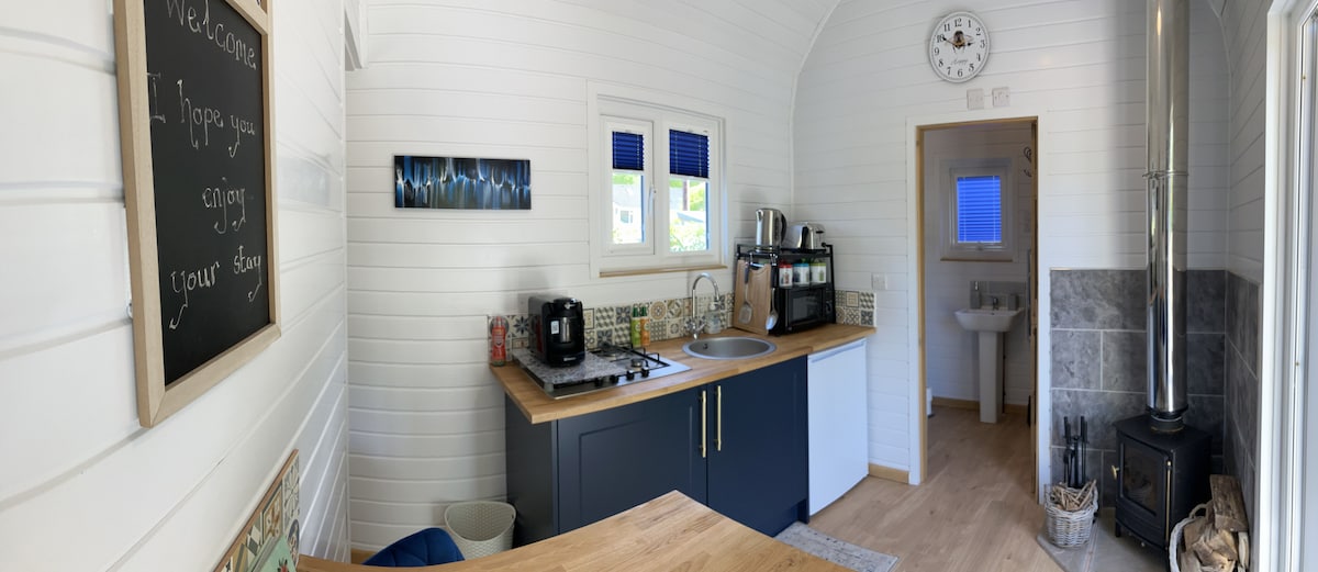 Stay 3 nights or more and save 15% off your stay. The Lazy Mare is located down an old farm track next to our home, a converted barn in an Area of Outstanding Natural Beauty. The accommodation is a beautifully converted horse truck in a secluded hamlet with breathtaking views. Inside you will find a king bed snug, woollen throws, log burner + electric heating, kitchenette, power shower, towels, board games, magazines, tea & coffee plus all the essentials you need for your stay.