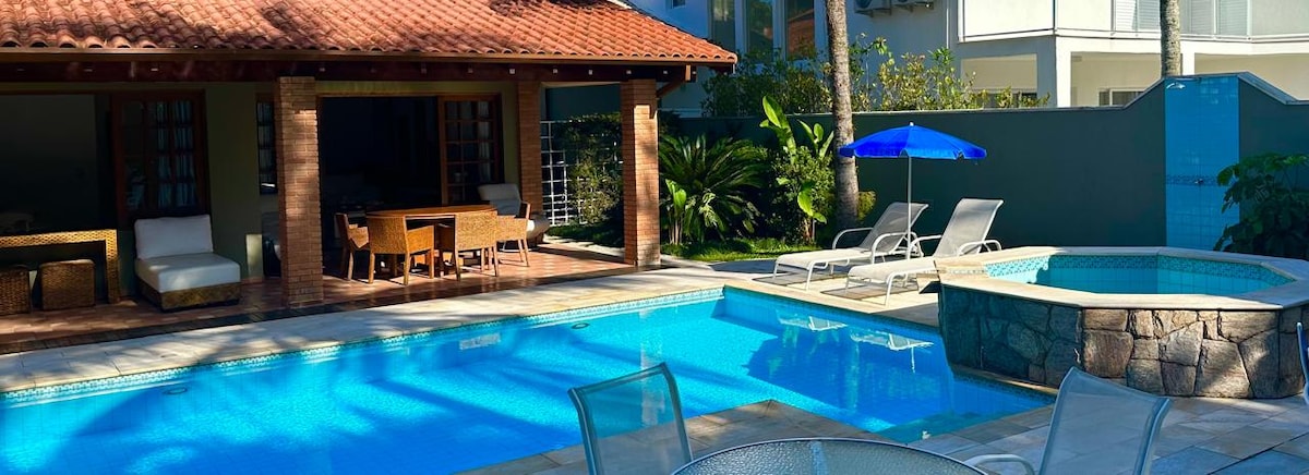 San-Pauludan geri qalmaq və geri qayıtmaq üçün mükəmməl ev! Ailə və rahat atmosfer. Çimərlikdən 450 m məsafədə yerləşən Riviera de São Lourenco 21 Modulunda bu evdə 16 nəfər rahat yatır. Burada 5 kondisionerli süita, buxarısı olan qonaq otağı, təchiz olunmuş mətbəxlə birləşdirilmiş yemək otağı var. Açıq hava məkanında ailə və dostlarınızı bir araya gətirmək üçün ideal barbekü olan üzgüçülük hovuzu, bağça və qurman məkanı var. Keyfiyyətli Wi-Fi və Pay-Thannel Smart TV. Kiçik ev heyvanı.