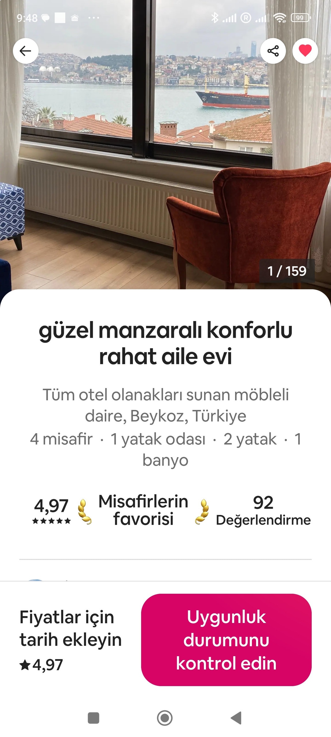 Beykoz körpüsünə 5 dəqiqəlik piyada məsafədə. Ayrıca villada Boğaz mənzərəli mənzil. Kombi qazanı var, hər otaqda qızdırıcı var. 3 yataq otağı var. 1 cütlük üçün 2 tək çarpayı var. Paltaryuyan maşın, soba, plitə və qab-qacaq mövcuddur. Binanın qarşısında parkinq mövcuddur. Mən özüm villanın yanındakı mənzildə yaşayıram.