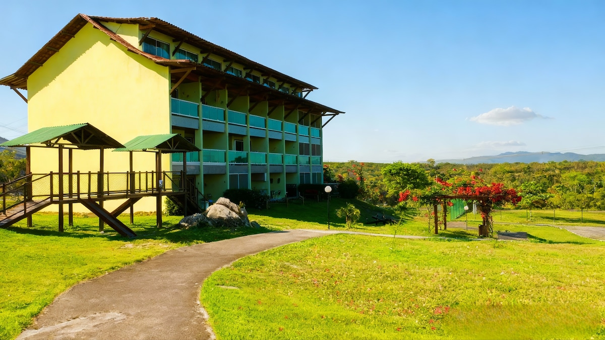 Repleto de verde por todos os lados, o nosso Flat situa-se dentro do Hotel Fazenda Monte Castelo e possui paisagem com vista para colinas. Há 92Km da capital de Pernambuco, você encontrará espaços de lazer com piscina e jogos, quadra de tênis e campinho de futebol, bem como passeios de jardineira, triciclos e charrete. Trilhas que podem ser feitas à pé ou à cavalo, isso tudo em um único lugar. Você ainda poderá se deslumbrar com um lindo pôr do sol.