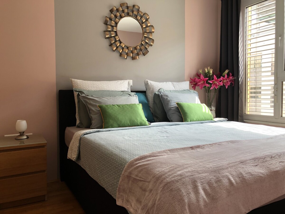 Sakit 41 m² mənzil rahatlamaq və dincəlmək üçün ehtiyacınız olan ağıllı şəkildə təşkil edilmiş məkanlar və əşyalar ilə funksionallıq və rahatlığın mükəmməl qarışığını təklif edir. Səs-küylü şəhər mərkəzindən və mərkəzi stansiyalardan bir neçə dəqiqə uzaqda yerləşən bu çox rahat yerdə özünüzü evinizdəki kimi hiss edəcəksiniz. Sizə rahat və ev şəraitində təcrübə təmin etmək üçün xüsusi qonaqpərvərlik fədakarlığımız olan xoş qonaqlamadan zövq alın.