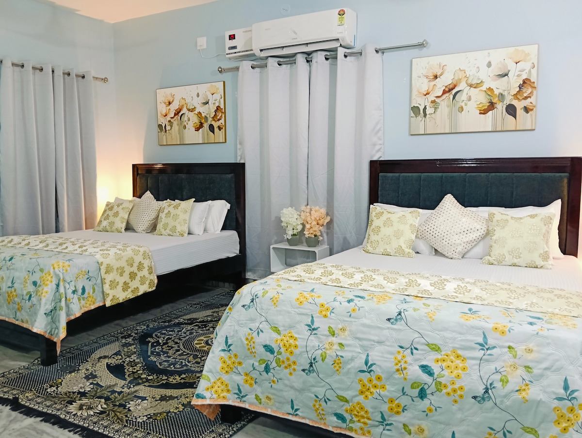 Experience luxury and comfort in a elegant, Family Stays Only villa, nestled in a premium Location. Our newly renovated unit features: - A spacious and air conditioned bedroom (238 sqft) with two queen-sized beds (78x60 Inch) and premium 8-inch mattresses - A well-appointed attached bathroom - A fully equipped kitchen - A living room Enjoy: - Unparalleled privacy - Prime location near IT hubs, hospitals, and malls. - Gardens and peaceful surroundings - Supportive staff available