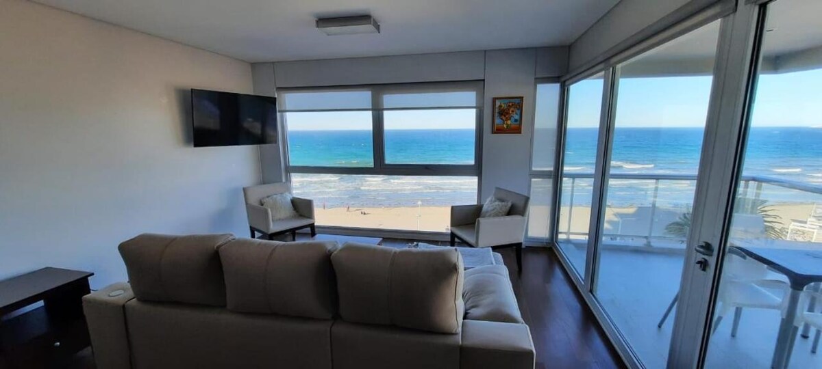 Nos encontramos a 25 pasos de la playa. Desde un sillón gigante puede pasarse horas mirando el Golfo, siempre encontrara alguna ballena saltando, y retozando. Calefacción por piso radiante, doble vidrio, aire acondicionado en todas las habitaciones, desayunador y mesa principal en el living. Dos habitaciones en suite, una con jacuzzi. Con 100 metros cuadrados más terraza cubierta frente al mar, más cochera en el subsuelo. El lugar es un pequeño paraíso. Todo es nuevo, y de primera calidad.