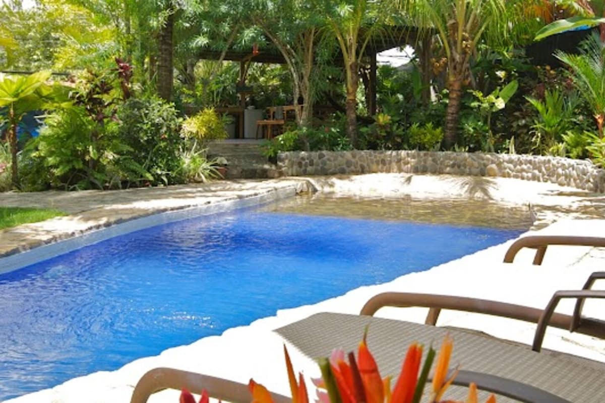 Rahat 150-179 sm-lik çarpayı və otel standartlarına uyğun olaraq hər gün təmizlənən ləkəsiz ayrıca hamamı olan parlaq, rahat otaqdan zövq alın. 🍃 Qonaqlamanıza hər səhər təravətli Kosta-Rika səhər yeməyi və Manuel Antonio Milli Parkında pulsuz bələdçili tur daxildir (biletlər daxil deyil). Vəhşi təbiət və tropik bitki örtüyü ilə əhatə olunmuş çimərlikdən və park girişindən cəmi bir neçə dəqiqəlik məsafədəyik. Qonaqlar həmçinin Manuel Antonio ərazisində turlar, fəaliyyətlər, restoranlar və daha çoxu üzrə 20%-ə qədər endirimlə eksklüziv giriş icazəmizə yüksəldə bilər.