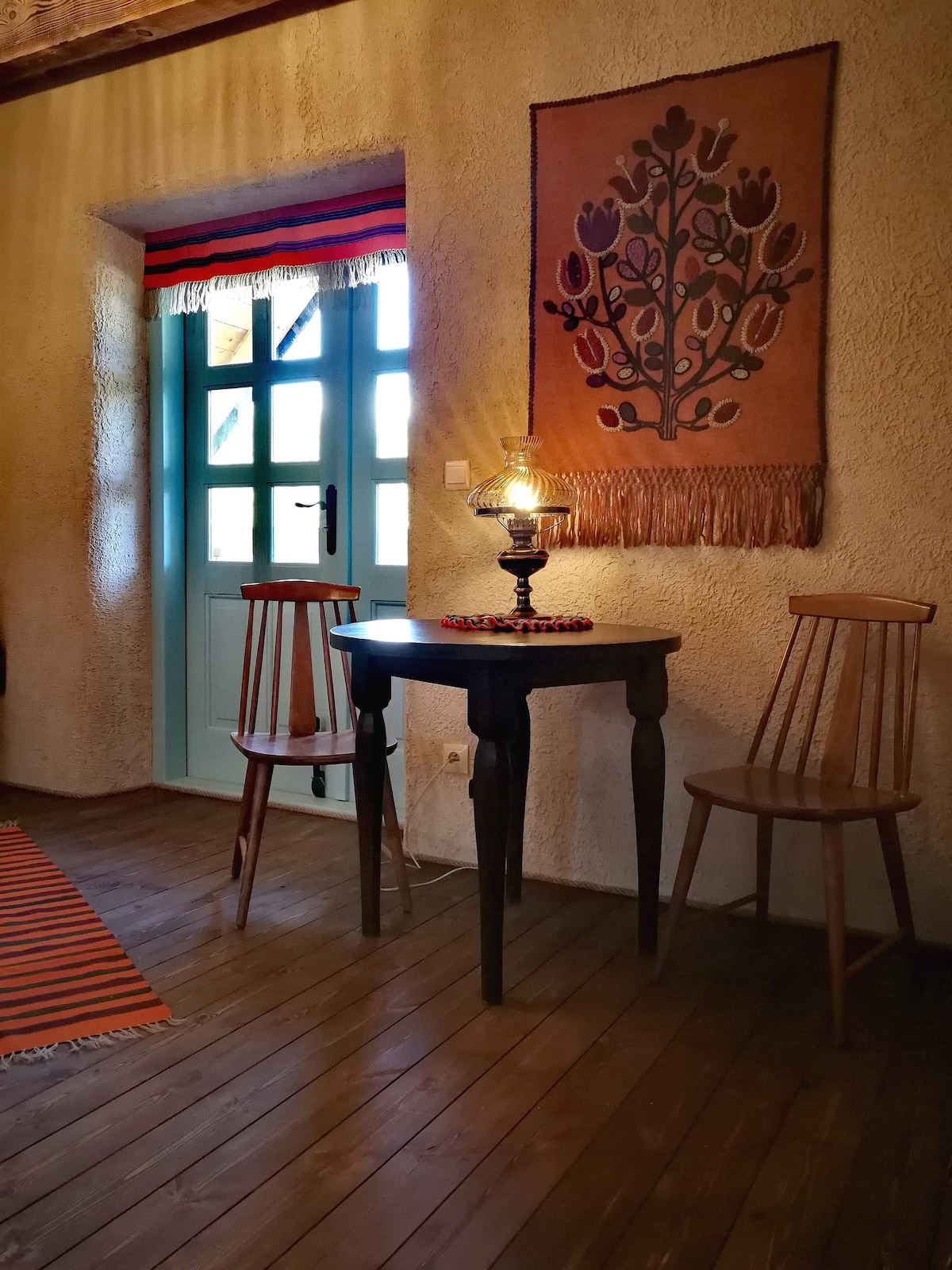 Dwa drewniane domy łączące lokalny styl z nowoczesnością i wiejskim charakterem. Otwarte przez cały rok, każdy podzielony na dwa niezależne apartamenty (48 m² + 15 m² taras), z osobnym wejściem, aneksem kuchennym, salonem, dwiema sypialniami i łazienką. Wszystkie sypialnie posiadają balkon z widokiem na piękną okolicę bukowego lasu lub daleką panoramę Połonina. Na terenie obiektu znajdują się aż dwa place zabaw z trampolinami dla naszych najmłodszych Gości.