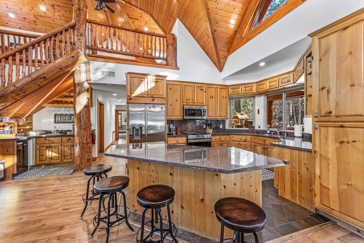 Bu geniş 4 yataq otaqlı kabinə dağda mükəmməl istirahət deməkdir! Böyük oyun otağı hovuz, şaflbord, futbol və ailələr və qruplar üçün mükəmməl olan bar ilə diqqətləri özünə cəlb edir. Yamac mənzərəsi olan terraslarda dincəlin, ocağın yanında toplaşın və ya uşaqların hasarlı həyətdə təhlükəsiz oynamağına imkan yaradın. 2 king ölçülü çarpayı, queen ölçülü çarpayı, ikimərtəbəli otaq və müasir mətbəxlə Snow Summit, Bear Mountain və The Village-ə bir neçə dəqiqəlik məsafədəsiniz. • Oyun otağı • Yanğın Piti • Dağ mənzərəsi