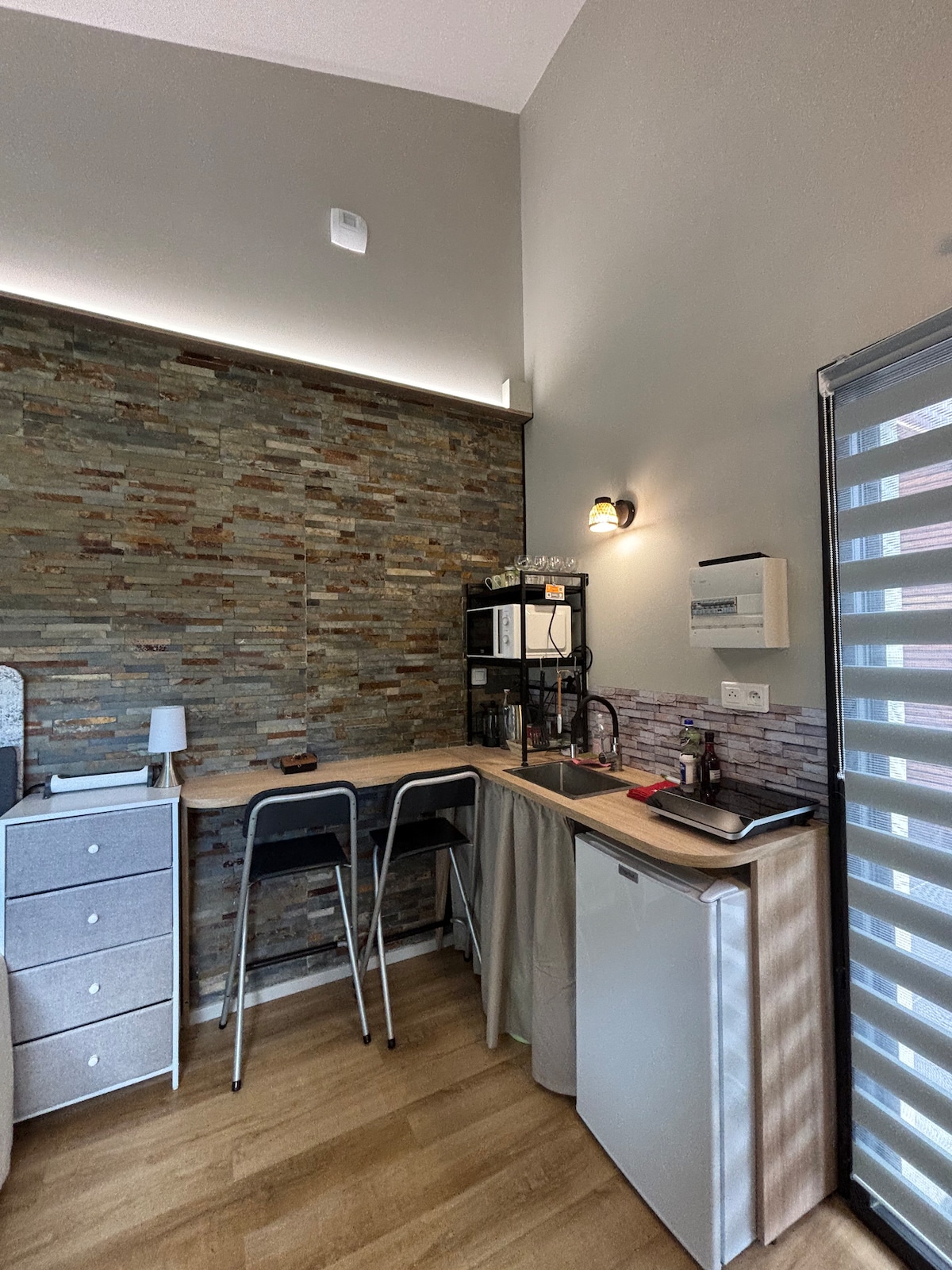Örtülü terraslı və şəxsi spa olan kiçik studiya