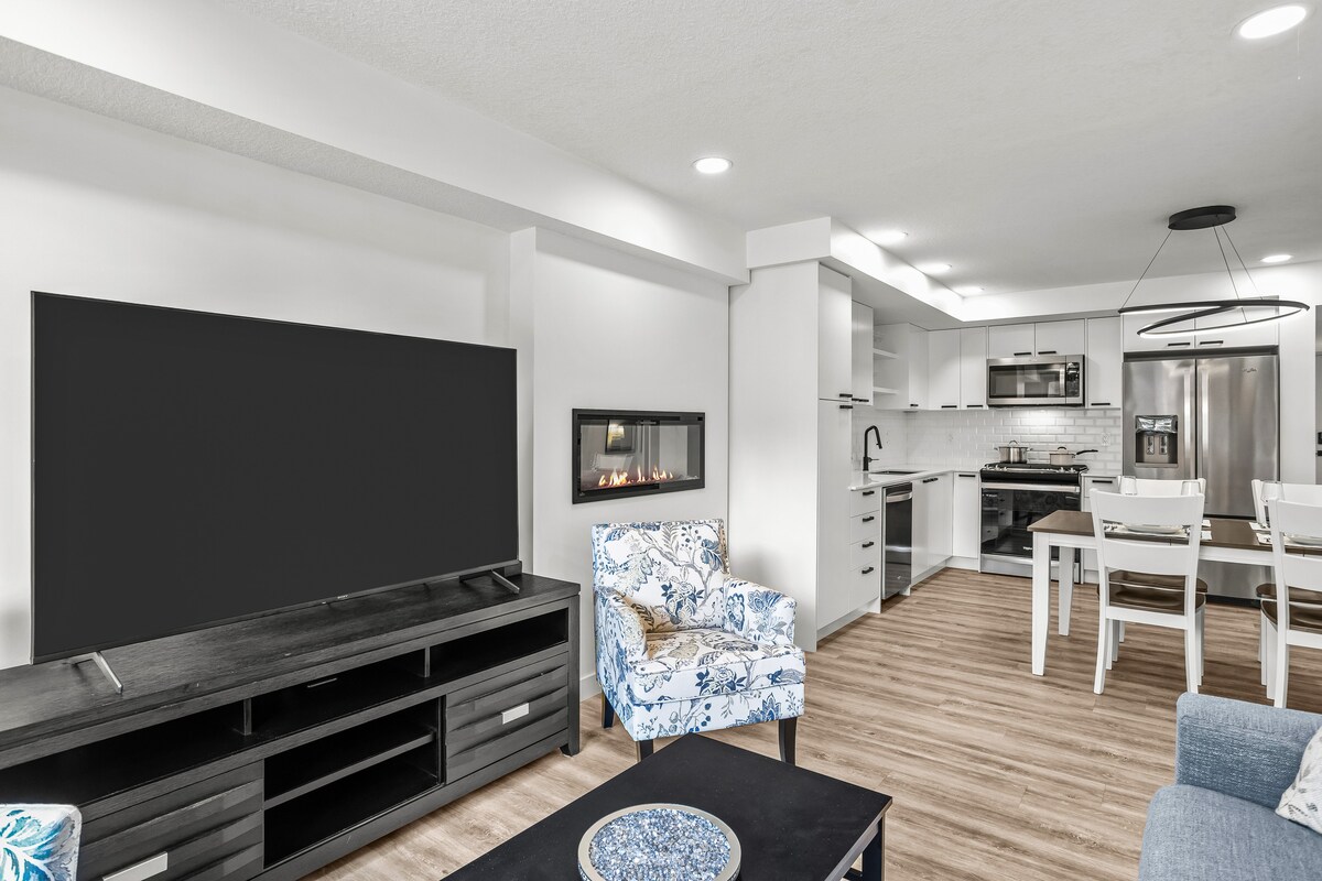 Kanmorun sakit və dəbli məkanına xoş gəlmisiniz! Bu dəbdəbəli kondominium şəhər mərkəzindən cəmi 10 dəqiqəlik piyada məsafədə yerləşir, mağazalar, restoranlar və gəzinti yolları qapınızın önündədir. Rahat daş buxarı ilə dincəlin, böyük ölçülü yataqda dərin yuxuya gedin və ya yüksək keyfiyyətli divan-çarpayıda əlavə qonaqları qəbul edin. İşıqlı, havadar yaşayış sahəsi, tam təchiz olunmuş mətbəx, otaqda camaşırxana, pulsuz parkinq və 1 GB yüksək sürətli Wi-Fi-dan zövq alın. Rok dağlarında macəra və ya istirahət üçün idealdır.