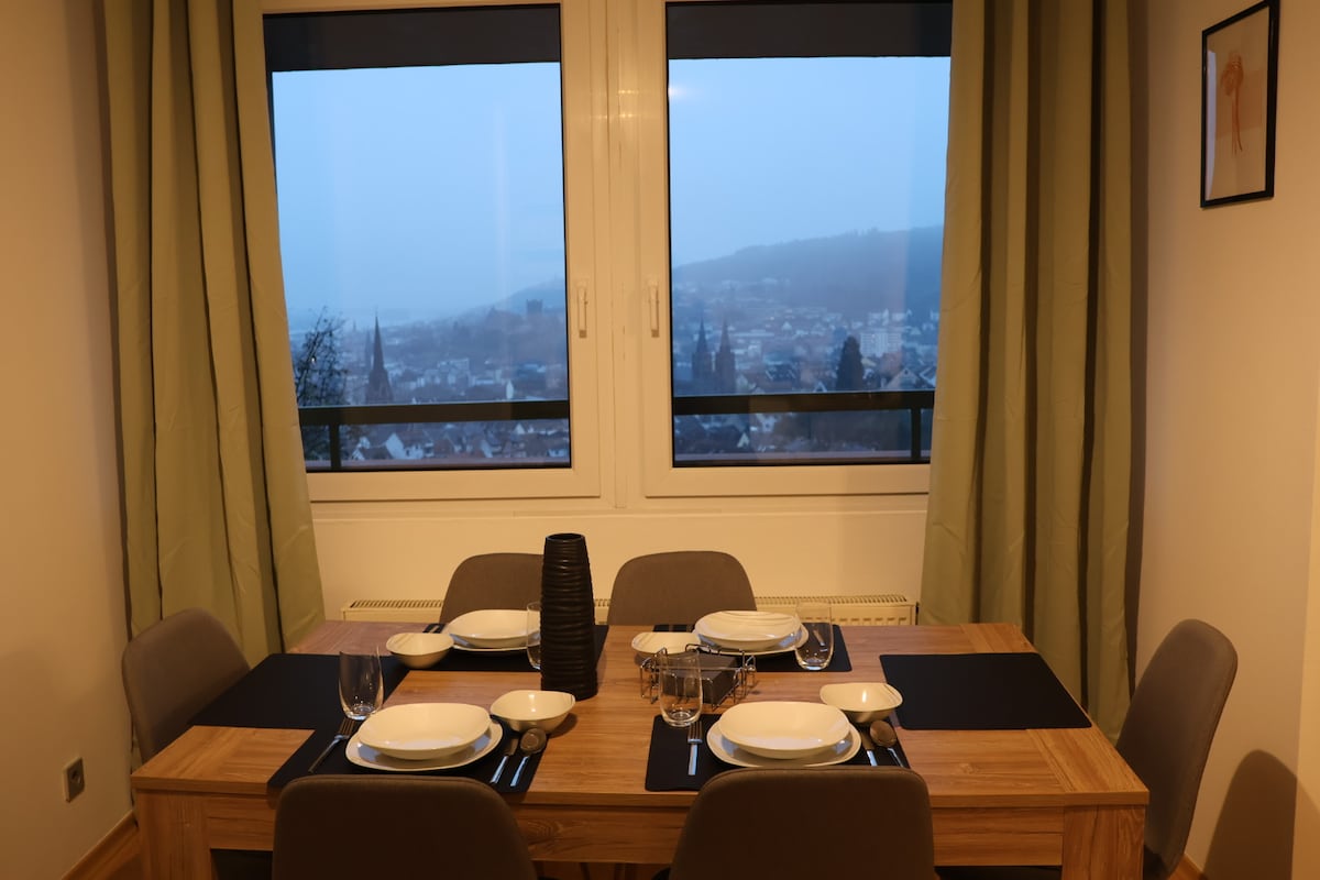 Panoramik 60 m² mənzil – maksimum 4 qonaq üçün • Böyük ölçülü çarpayı, divan çarpayı, qatlanan çarpayı (sorğu əsasında), uşaq çarpayısı • Tam təchiz olunmuş mətbəx: soba, soba, çaydan, qəhvə maşını, qabyuyan maşın, soyuducu, televizor • Yüksək keyfiyyətli döşəkağı-dəsmal, dəsmal, qəhvə və çay • Günəş salonu, təbiət mənzərəsi olan böyük terras Əla mövqe: • Avtomobillə 5 dəq/ İdşteyn mərkəzinə piyada 30 dəq • Piyada gəzinti yolları qapıda başlayır • Frankfurt Hava Limanına və Wiesbaden-ə 20 dəq • Avtoban üçün 2 km • Yaxınlıqdakı oyun meydançası və ən yaxşı manqal restoranı