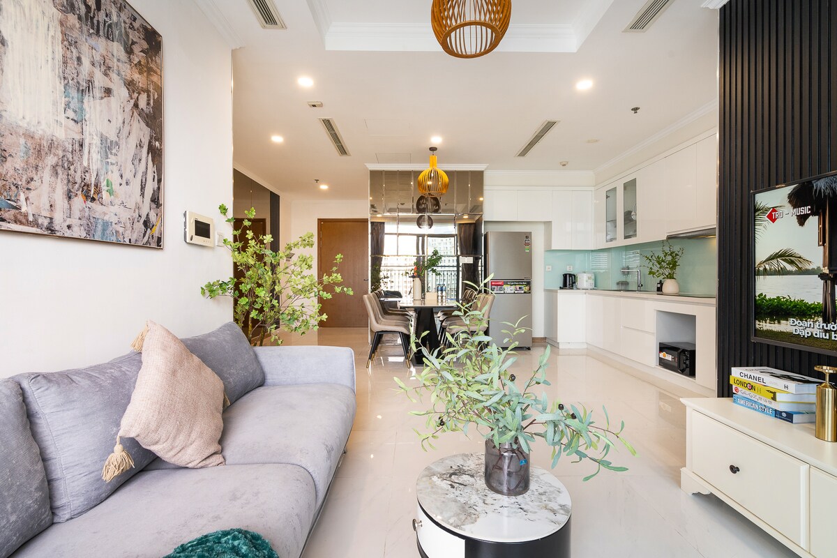 Müasir sənaye üslubunda dizayn edilmiş, minimalist qara-boz tonlu, lakin yenə də səmimi və zərif Vinhomes Central Tower 3-də yerləşir. Açıq məkan genişlik və parlaqlıq hissi yaradır. Bu, mərkəzdə rahat, estetik və özəl qonaqlama yeri axtaranlar üçün ideal seçimdir. Ailəniz bu mərkəzi mövqedə qaldıqda hər şey yaxındır (Landmark 81-dən təxminən 200 m məsafədə)