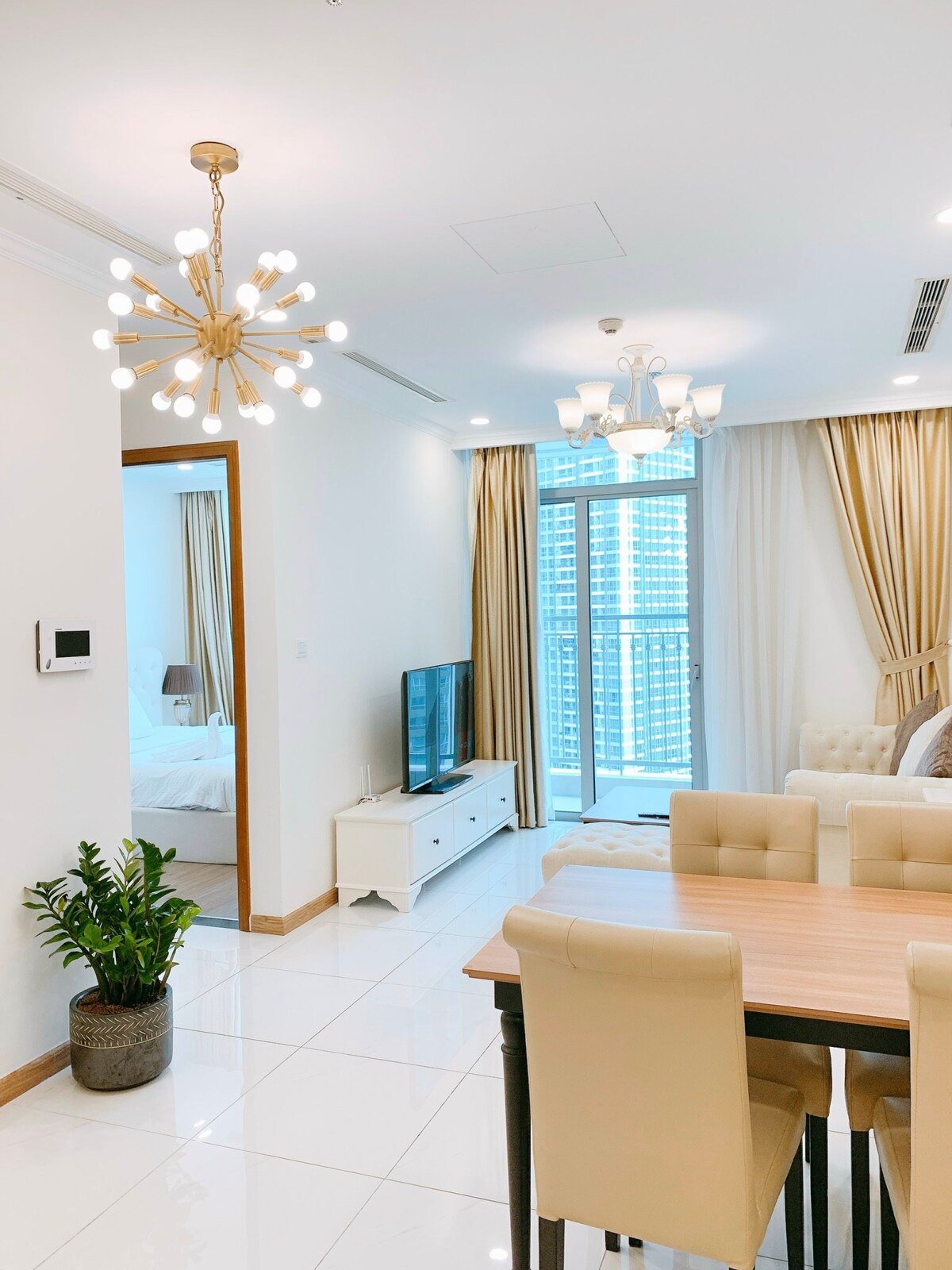 Bütün ayrıca 1 yataq otağı və 1 hamam otağından istifadə edəcəksiniz. Mənzil Landmark 81-in yanında zərif və mükəmməl dizayna malikdir Mənzil Ağıllı Tivi kimi tam təchiz olunub - İnternet, Qab-qacaq və duş sabunu olan Mətbəx daxil ediləcək *Nəzərə alın ki, hər hansı xüsusi sorğunuz varsa, rezervasiya etməzdən əvvəl bizi təsdiq edin, çünki sorğunuza uyğun mənzili çevik şəkildə dəyişə bilərik. Dekorasiya dizaynı və görünüşündə yalnız fərqli cəhətlər var. Bununla çəkinməyin.