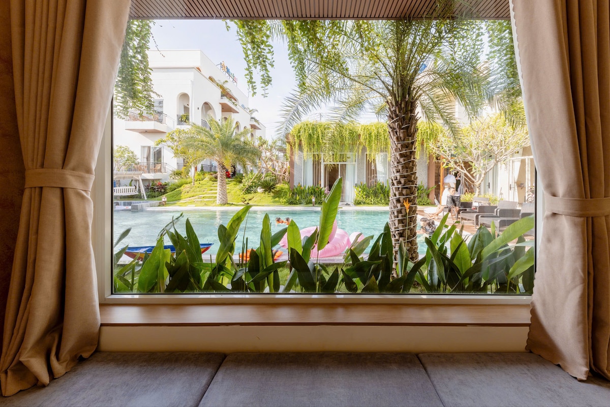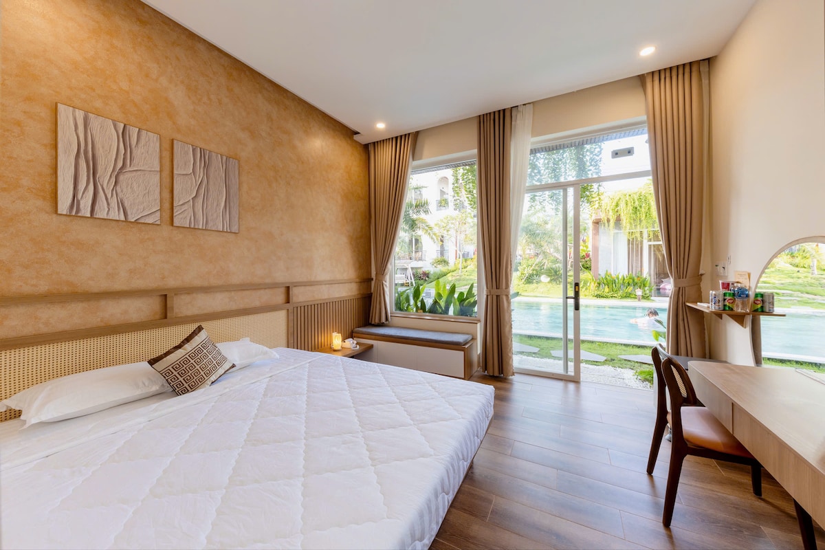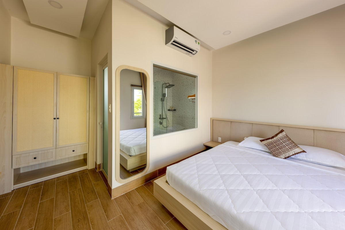 Room 7, 8-Pool View Super King Room là một trong những lựa chọn được nhiều khách yêu thích tại Mariné Homestay nhờ vị trí sát hồ bơi và không gian nghỉ ngơi cân đối, dễ chịu. Phòng được trang bị giường Super King size cùng phòng tắm riêng, mang lại cảm giác thoải mái và riêng tư. Từ phòng, bạn có thể nhìn ra hồ bơi, ánh sáng tự nhiên dịu nhẹ giúp không gian luôn thoáng và thư giãn suốt cả ngày. Mariné là homestay mới mở, tiện nghi, sạch sẽ – rất phù hợp cho kỳ nghỉ yên tĩnh tại Mũi Né.