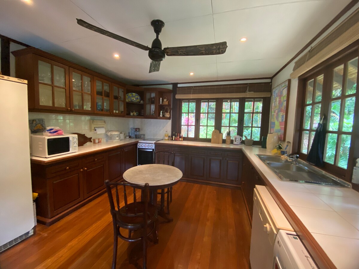 Bu xoş evdə 2 ədalətli ölçülü yataq otağı, 1 divan çarpayı, su qızdırıcısı olan 1 tam təchizatlı hamam otağı, internetə qoşulmuş kondisioner və televizoru olan qonaq otağı, yemək bişirmə imkanları və 5 nəfərlik yemək məkanı ilə təchiz edilmiş yaxşı ölçülü balaca mətbəx var. Hər bir otaq kondisioner, dolab, 1 150-179 sm-lik çarpayı və 2 birnəfərlik çarpayıdan ibarətdir. Burada Balıq hovuzu olan Arxa Həyət və Ön Veranda da var. Qida Mərkəzi, Ticarət Sahəsi, 24 Saat Klinikası və Hava Limanının yaxınlığında yerləşir. Paltaryuyan maşın, soyuducu və təhlükəsizlik qutusu da mövcuddur.