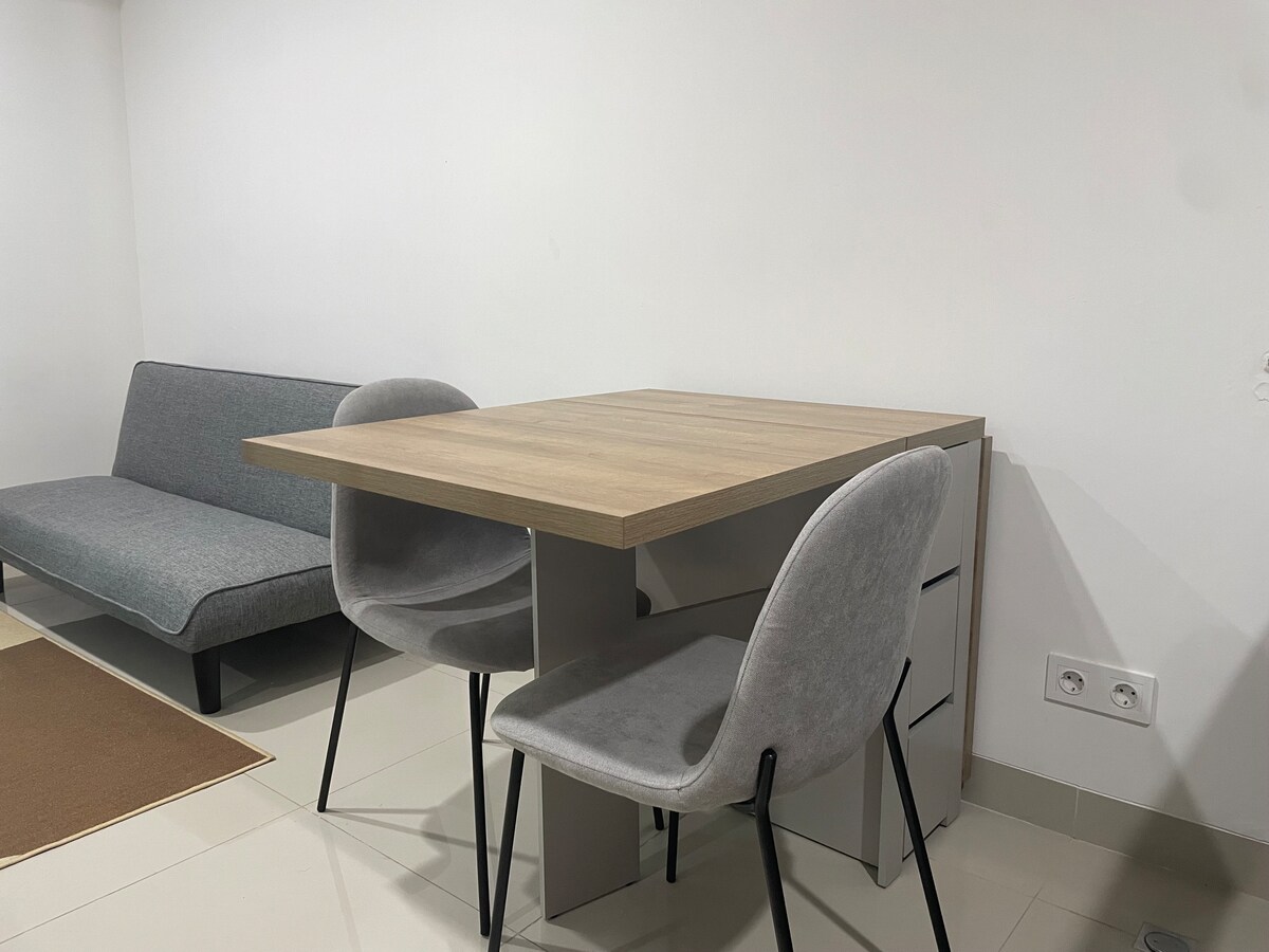 A brand new full furnished studio apartment located at CBD Bintaro, Tangerang Selatan. Enjoy a compact living at this super block area, connecting directly to Transpark Mall, complete with free gym and infinity pool this apartmen is suitable for you and your family for short and long stay period. We provide complete amenity and kitchen utensils to make your life easy.