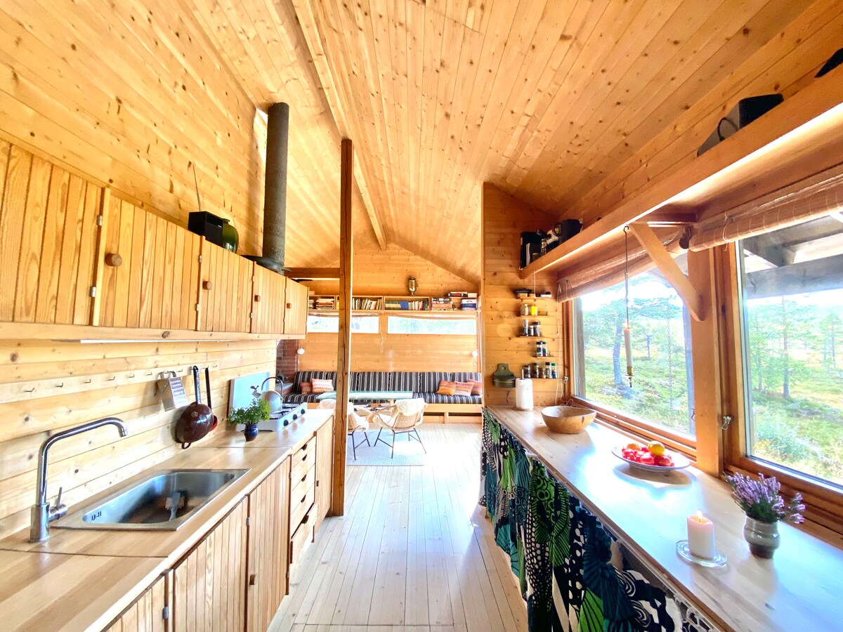 Your perfect romantic getaway at FURU Norway A gorgeous south-east facing cabin, with beautiful sky and sunrise views. Interior in a light color scheme, radiant like long summer days. Enjoy your private forest hot tub for 500 NOK per stay, book in advance. Floor to ceiling windows with black-out curtains, underfloor heating. King-size bed, kitchenette with 2-plate cooktop, equipped with high quality tableware, comfortable seating area. Bathroom with Rainshower, sink and WC.