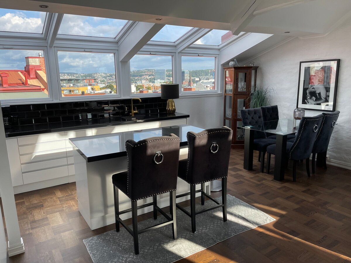 Bu mənzil hündür tavanları və həm günəşin doğuşundan, həm də qürubundan zövq ala biləcəyiniz Oslonun gözəl mənzərəsi ilə tamamilə unikaldır. Hər yerə piyada məsafə var. Hava limanı avtobusu eyni yerə yaxın dayanır ki, bu da Oslonun bütün görməli yerlərini görməyi tezləşdirir. Bu, 5-ci mərtəbədə lifti olmayan unikal loft mənzildir. Dar pilləkənlər olsa da, yuxarı qalxdığınız zaman Oslonun damında yaşayırsınız. Məkanda barbekü və oturma yerləri olan arxa həyət, sevimli St Hanshaugen parkı və yaxınlıqdakı barlar var.