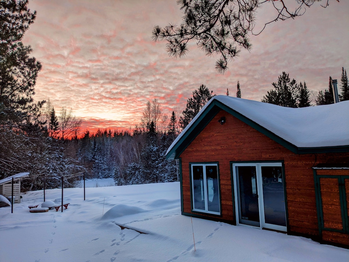 Our home is a 3 bedroom/2.5 bath, four season lake home with absolutely amazing lake views! This is a 2500 sq ft year-round home with open floor living area and lake views that will take your breath away! There is an electric sauna, an outdoor fire pit & a 3 season porch. Our dog friendly home sits on 12 acres of wooded land and we have 150 feet of rocky shoreline across the road. We are a 10 minute drive from downtown Ely on Shagawa lake.