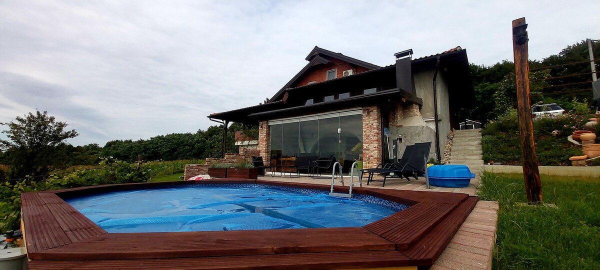Vineyard Home 02 is a multifunctional holiday house for active or relaxing stays, located in Maglenča, 10 km from Bjelovar, surrounded by hills, vineyards and forests. The house accommodates up to 6 guests in three air-conditioned bedrooms, with three bathrooms, a fully equipped kitchen,dining area and living room with a fireplace. Guests can enjoy a spacious terrace with jacuzzi and barbecue, a wellness area with Finnish sauna and hot tub, a sports hall, and an event hall for up to 40 people.