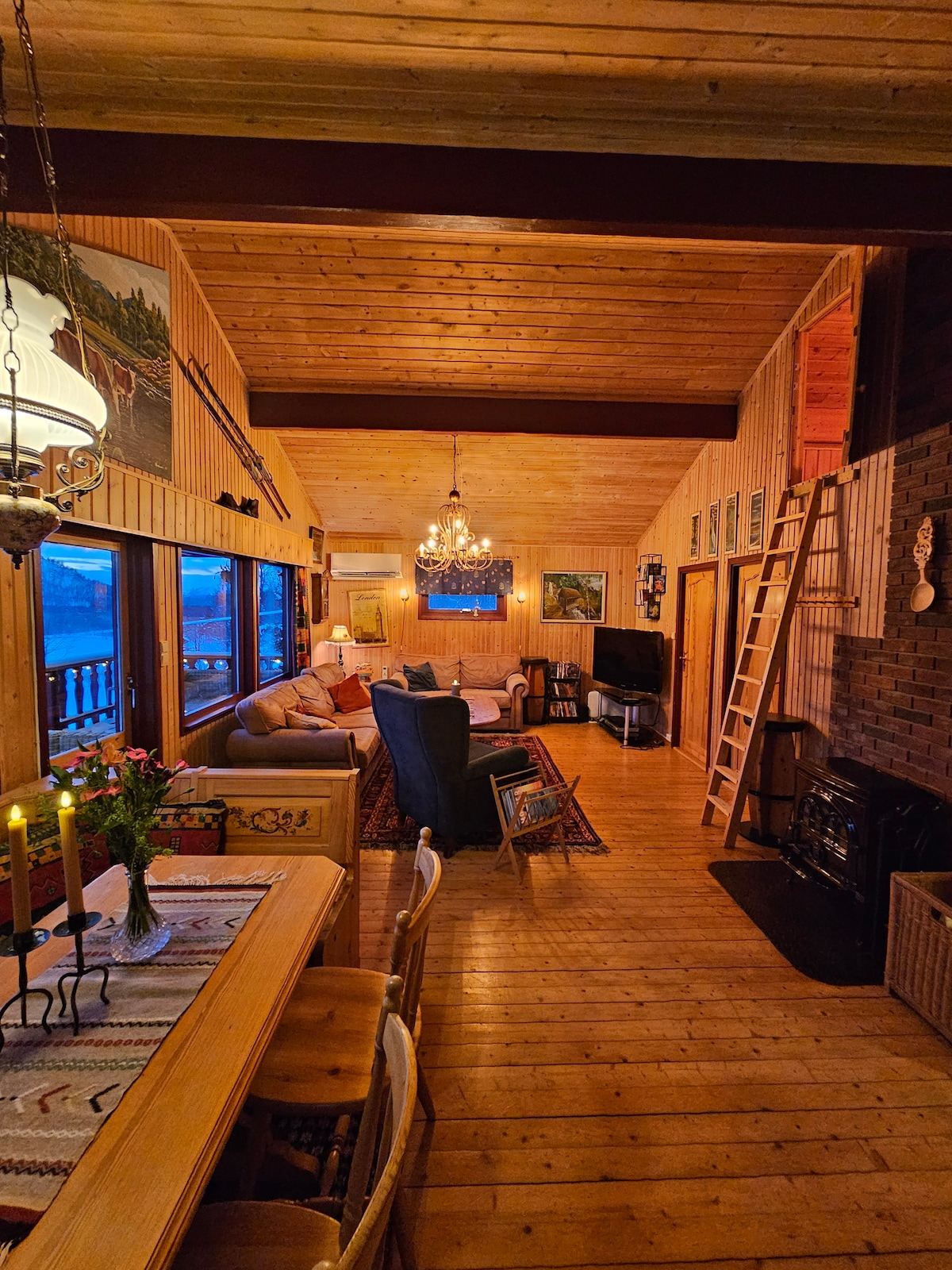 Our modern, well-equipped home sits right by the sea with breathtaking mountain views, surrounded by pristine Arctic nature. Spot reindeer, otters, moose, or even whales, and watch the Northern Lights from the porch. Steps away, enjoy a panoramic sauna by the water. A traditional BBQ hut is available as an optional rental. This is our beloved home, and many guests tell us they fall in love with it too. Few places blend comfort and wilderness like this. We never tire of it—and hope you will, too.