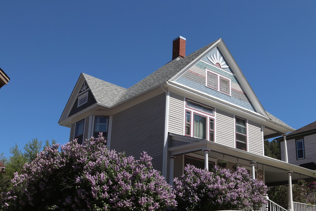Large bedroom in historic 1905 bed and breakfast style house! Renovating part of the house, but the bedroom is complete. Access to shared kitchen, dining room, living room, and bath room. 3 miles from Deadwood and 3 miles from the base of Terry peak! Great location to enjoy the northern Black Hills. This is a mountain town; houses are crooked and streets are narrow, but that’s what gives it its charm. Pets are allowed with a $20.00 pet fee, this will be charged after booking.