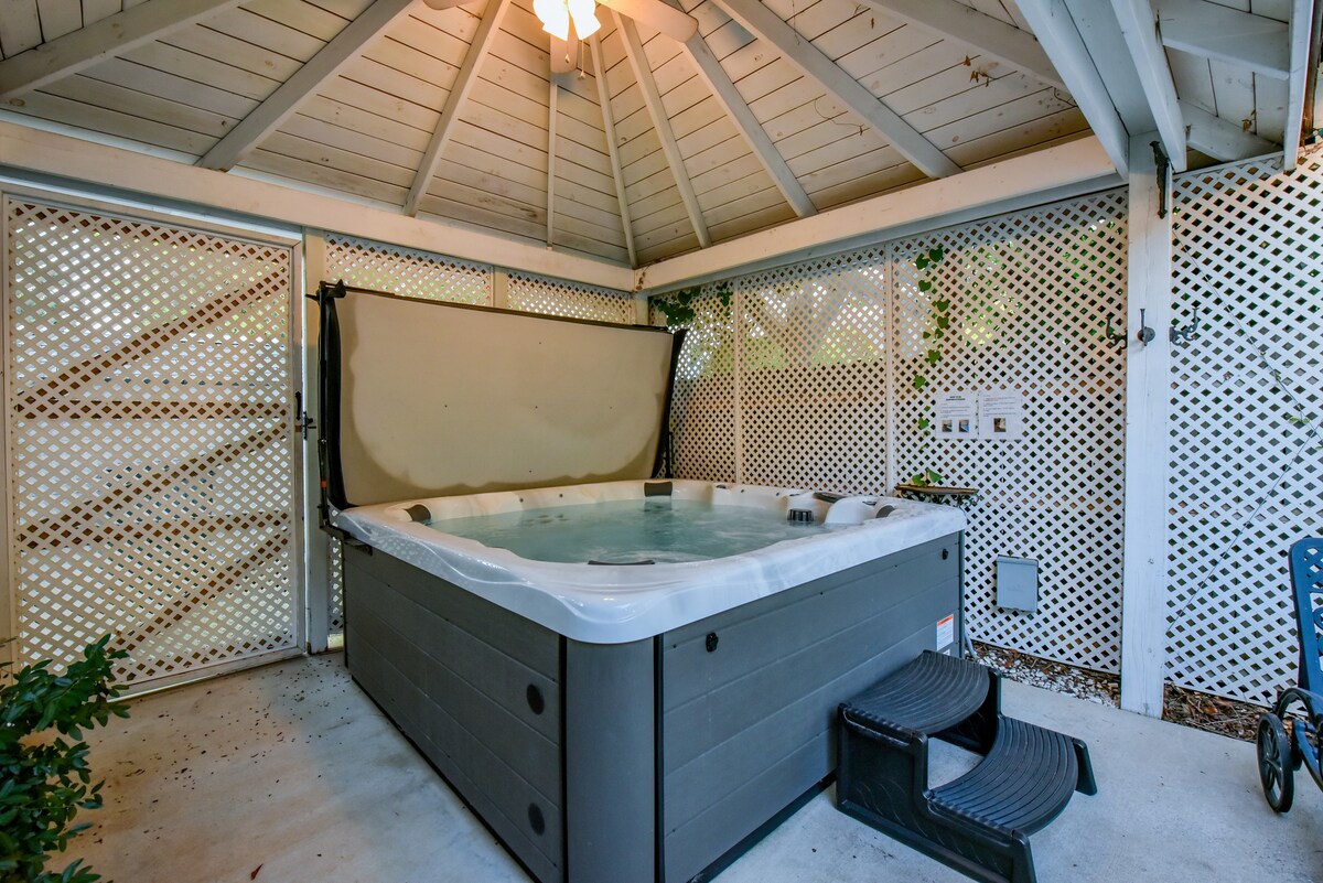 Take it easy at this unique and tranquil getaway. The cabin was built in 2020 and features a ramp and steps to a screened-in porch complete with glider rockers/table, a kitchen/dining/living room area with two recliners, one being a lift chair, TV/WiFi, laundry area, bathroom with handicapped accessible shower, and a bedroom with a king size bed. Concrete open parking pad for 2 vehicles. Quiet neighborhood with minimal traffic. Perfect for mature guests with lots of amenities provided!