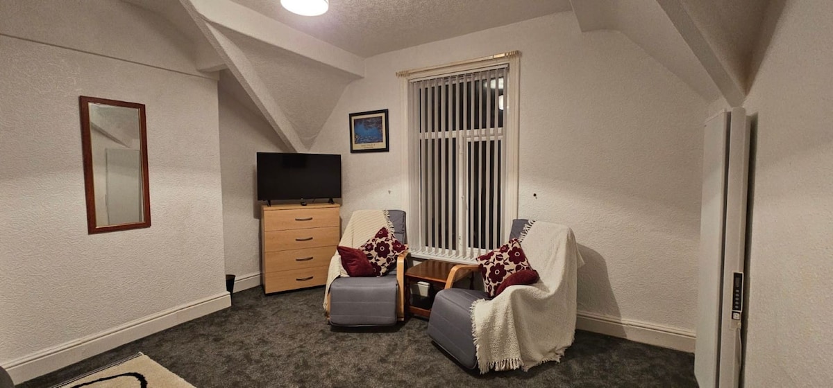 Bləkpul promenadasından cəmi 2 dəqiqəlik məsafədə yerləşən bu yenicə təmir edilmiş studiya mənzilində yeni ayrıca mətbəx sahəsi və geniş hamam otağı sahəsi var. İstirahət zonası yataq otağı, eləcə də çox rahat Emma döşəyi olan yeni ikinəfərlik çarpayı kimi fəaliyyət göstərir. Maksimum iki nəqliyyat vasitəsi üçün pulsuz parkinq mövcuddur və sizi Blackpool, Bispham, Cleveleys və Fleetwood-a apara biləcək tramvaya giriş imkanı ilə promenada cəmi 2 dəqiqəlik məsafədədir.